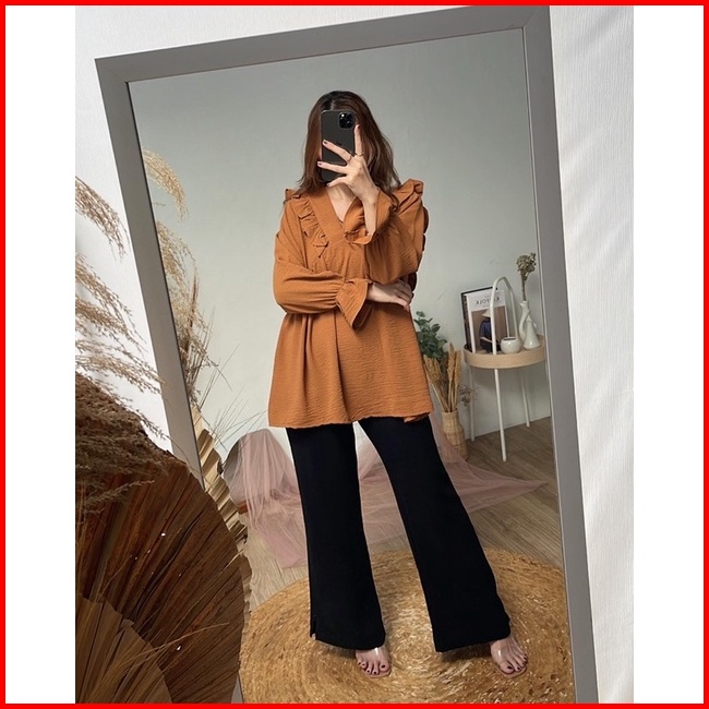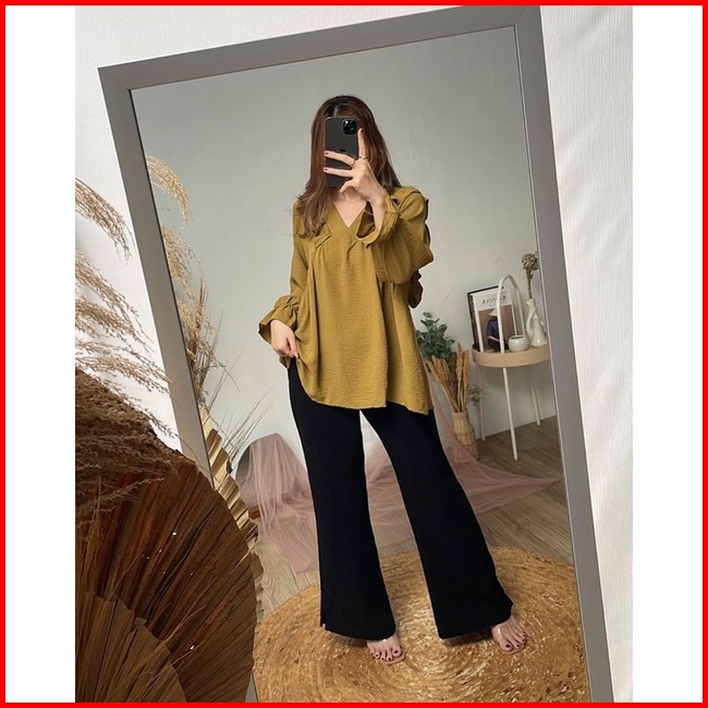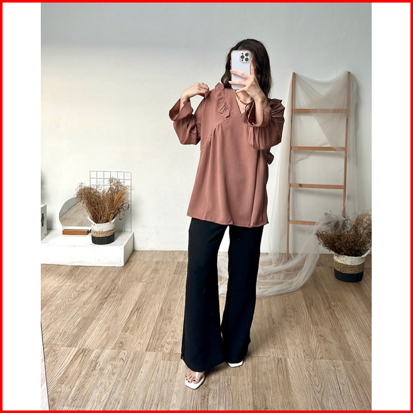 Keyla Longshirt Fashion Blouse Basic Atasan Lengan Panjang Wanita Fashion Korea Nyaman Cocok Untuk Kantor Kuliah Adem Be