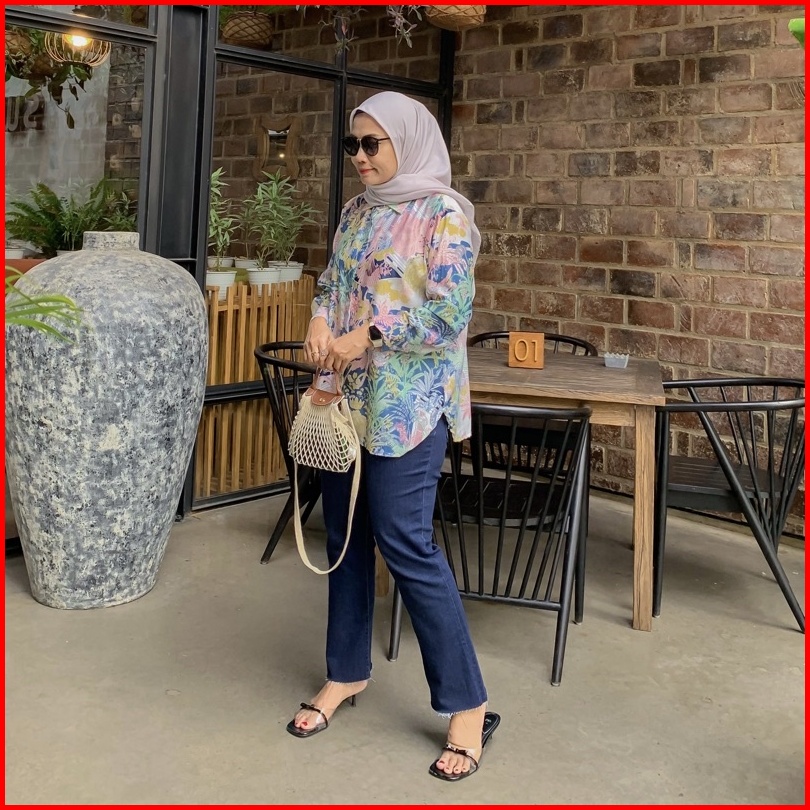 Kemeja Oversize Flower Pattern Oversize Shirt Ld 120 Cm