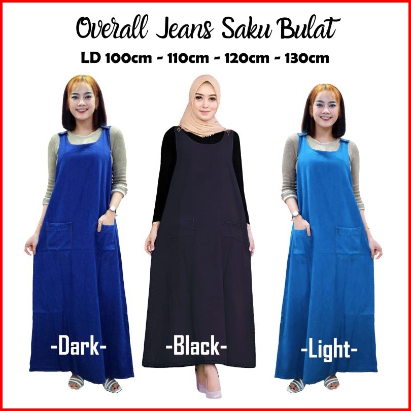 Overall Jeans Jumbo Overall Jeans Wanita Kekinian Baju Overall Ibu Hamil Ld 100 Ld 110 Ld 120 Ld 130