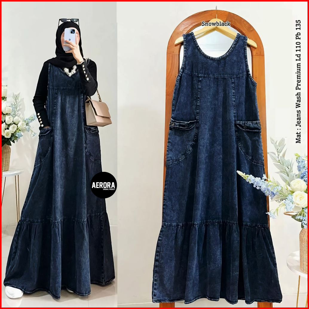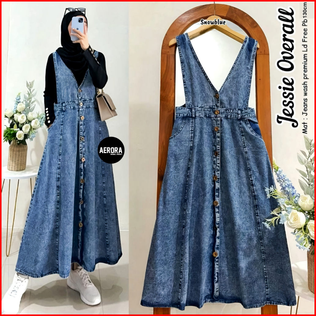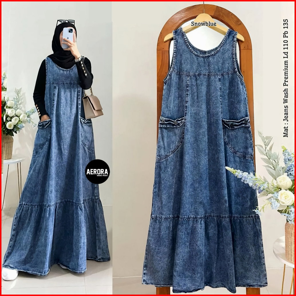Aerora Baju Kodok Olla Overall Overal Dress Rok Panjang Jeans Wanita Terbaru 2025 Fashion Muslim