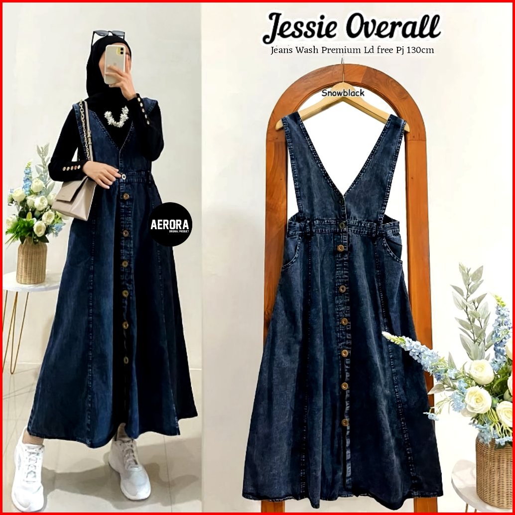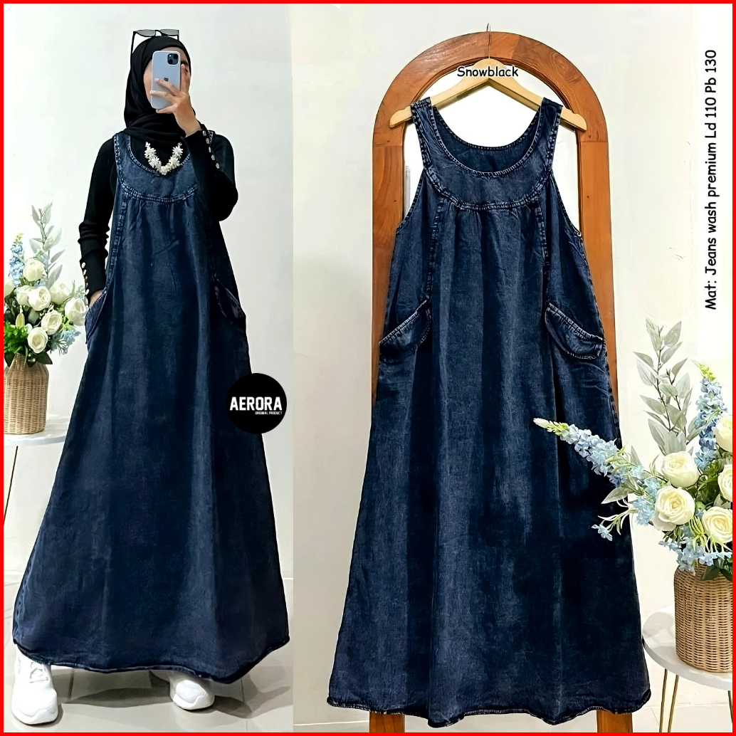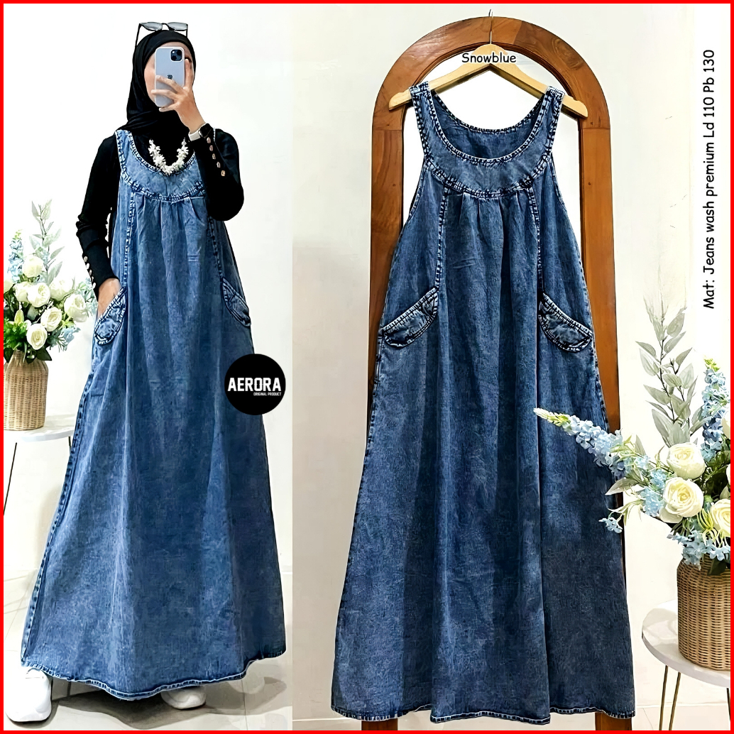 Aerora Baju Kodok Olla Overall Overal Dress Rok Panjang Jeans Wanita Terbaru 2025 Fashion Muslim