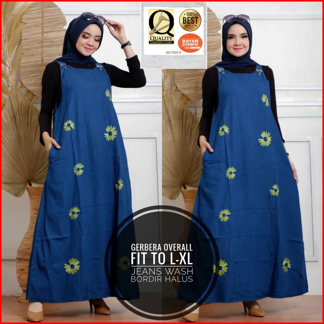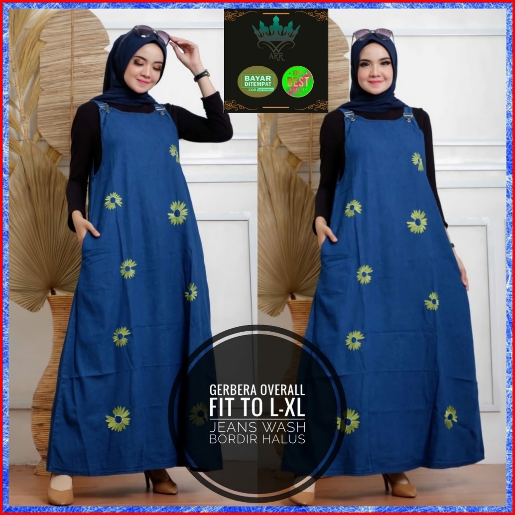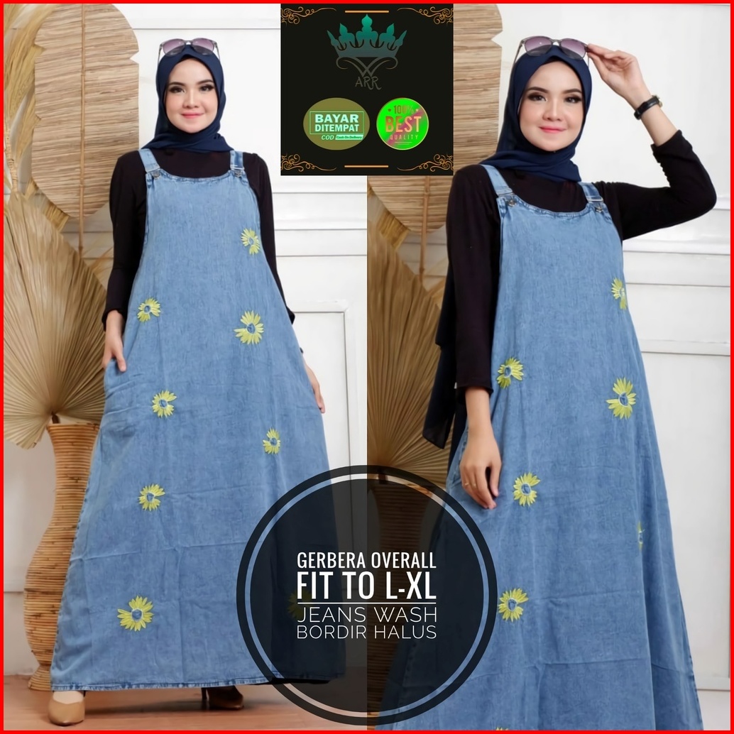 Aerora Baju Kodok Overall Dress Jeans Wanita Bordir Halus Ld 105 P 135 Gerbera Overall Allsize