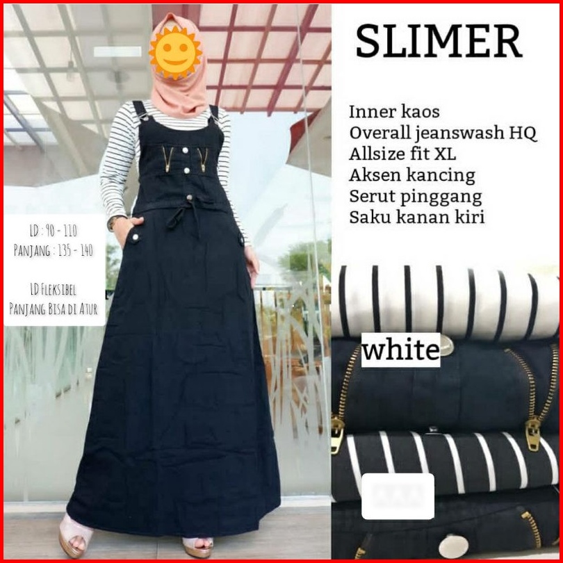 Baju Kodok Overall Rok Jeans Wanita Dewasa Remaja Set Inner Outer Denim Muslimah Jumpsuit Cewek