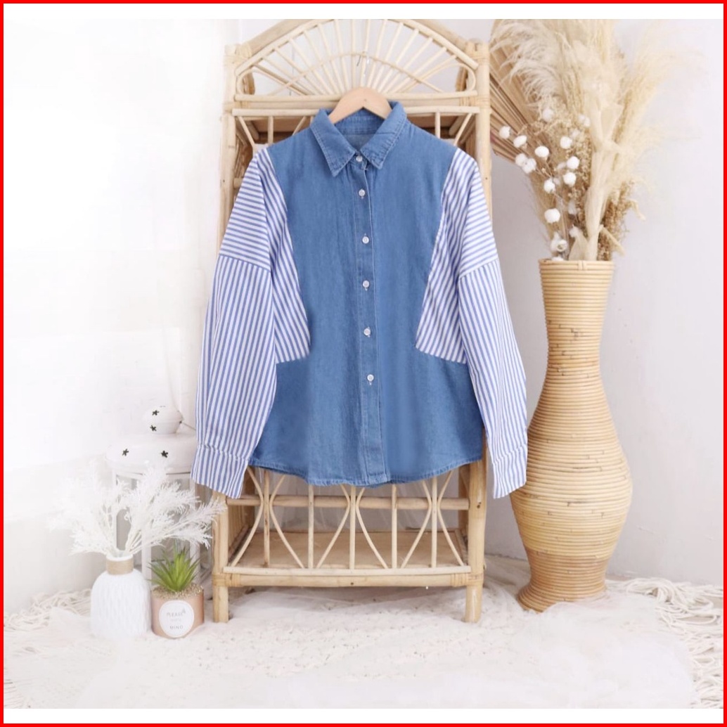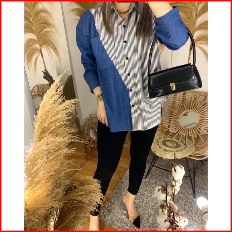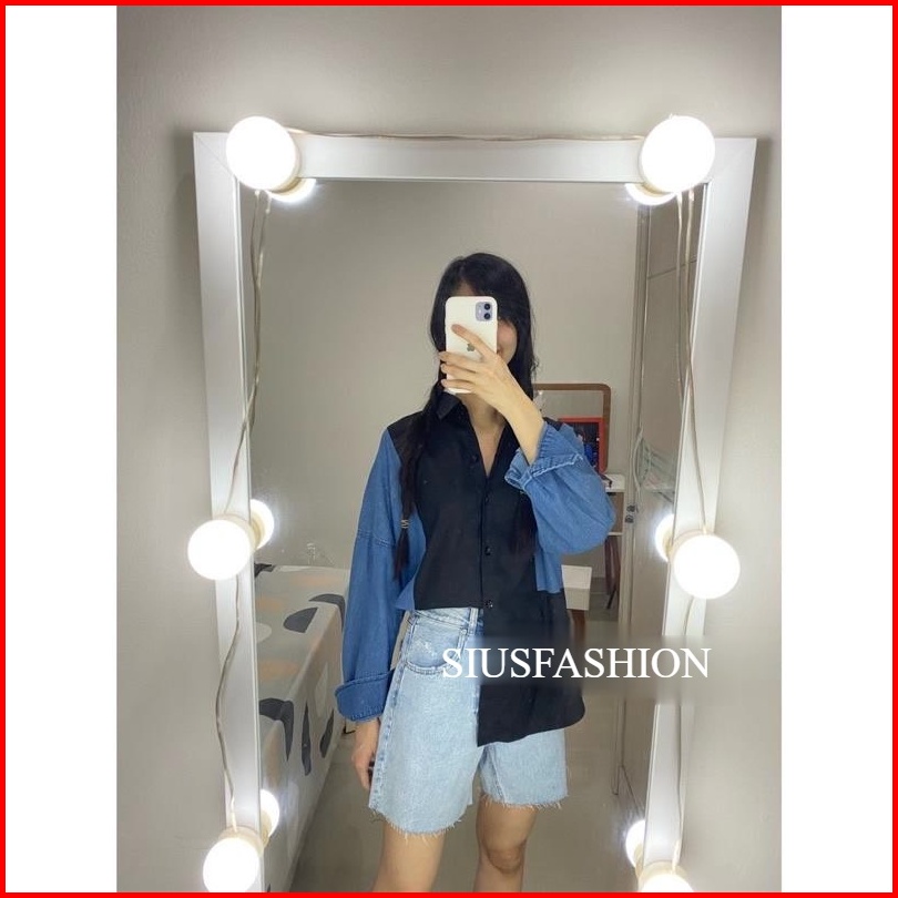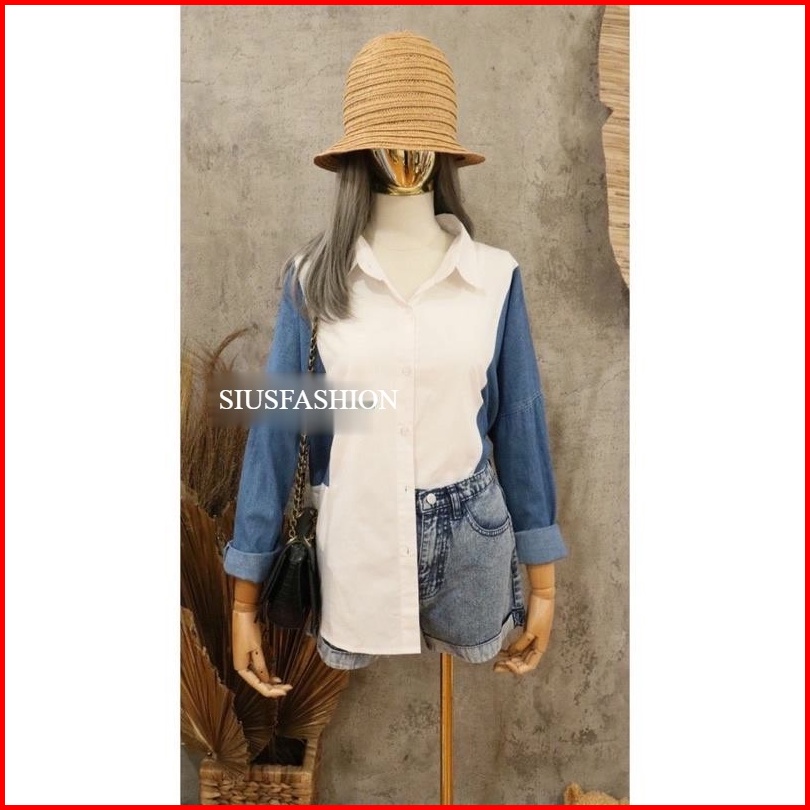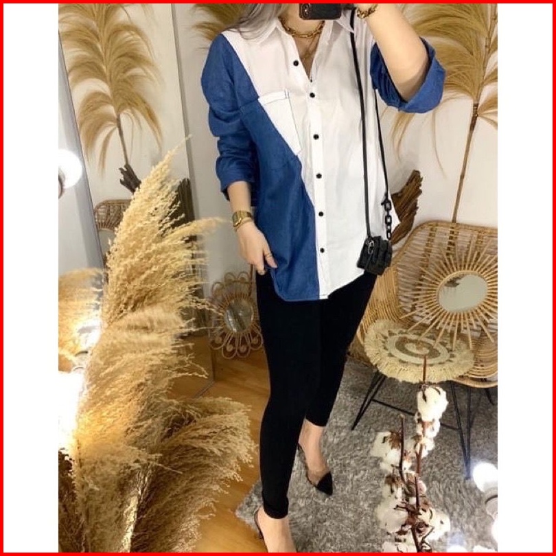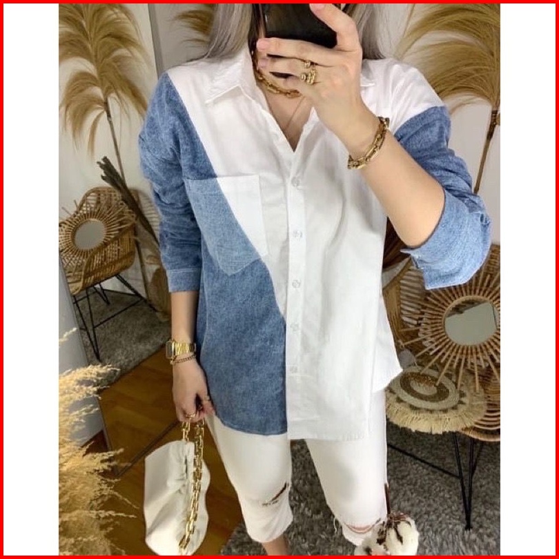Kemeja Wanita Kekinian Kemeja Wanita Atasan Kombinasi Denim Jeans Oversize 678 044 Jeans