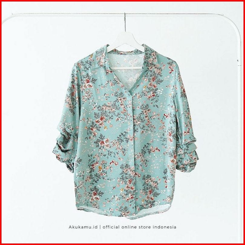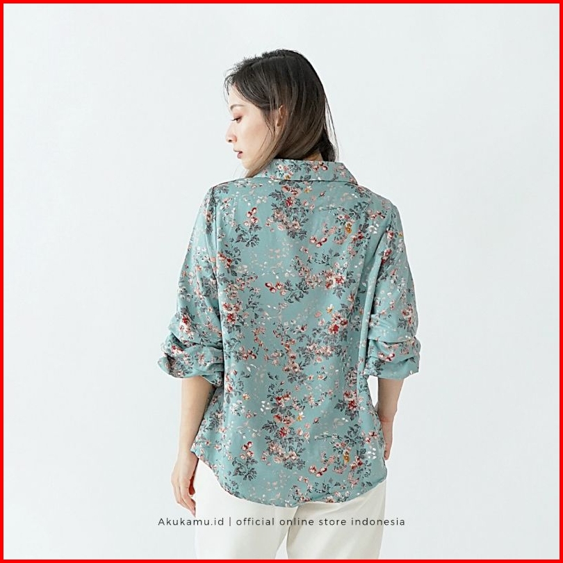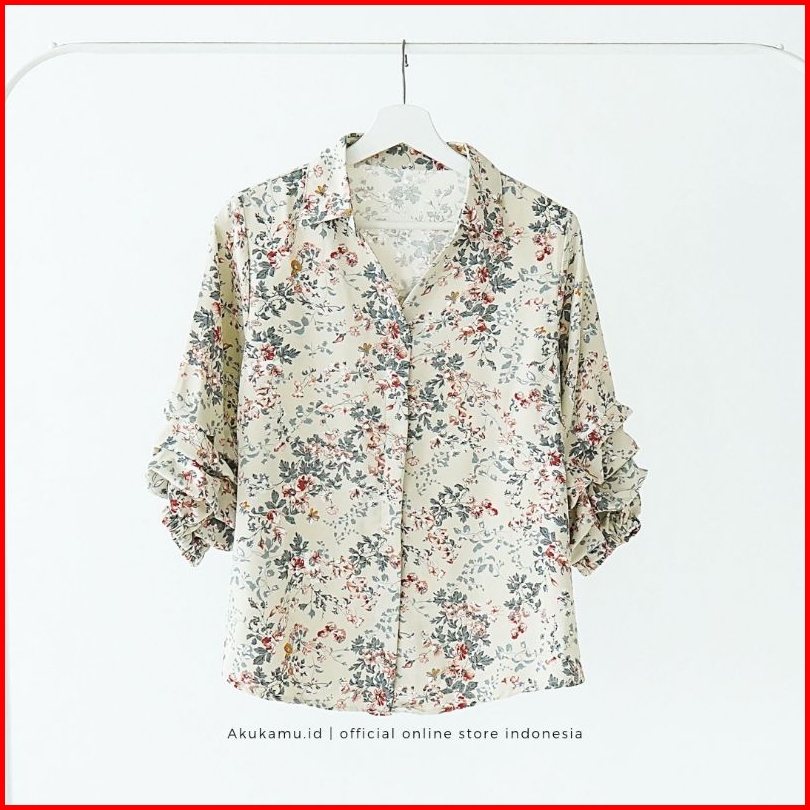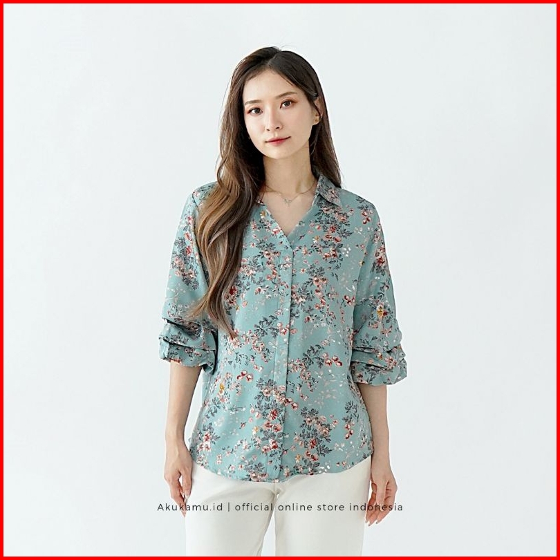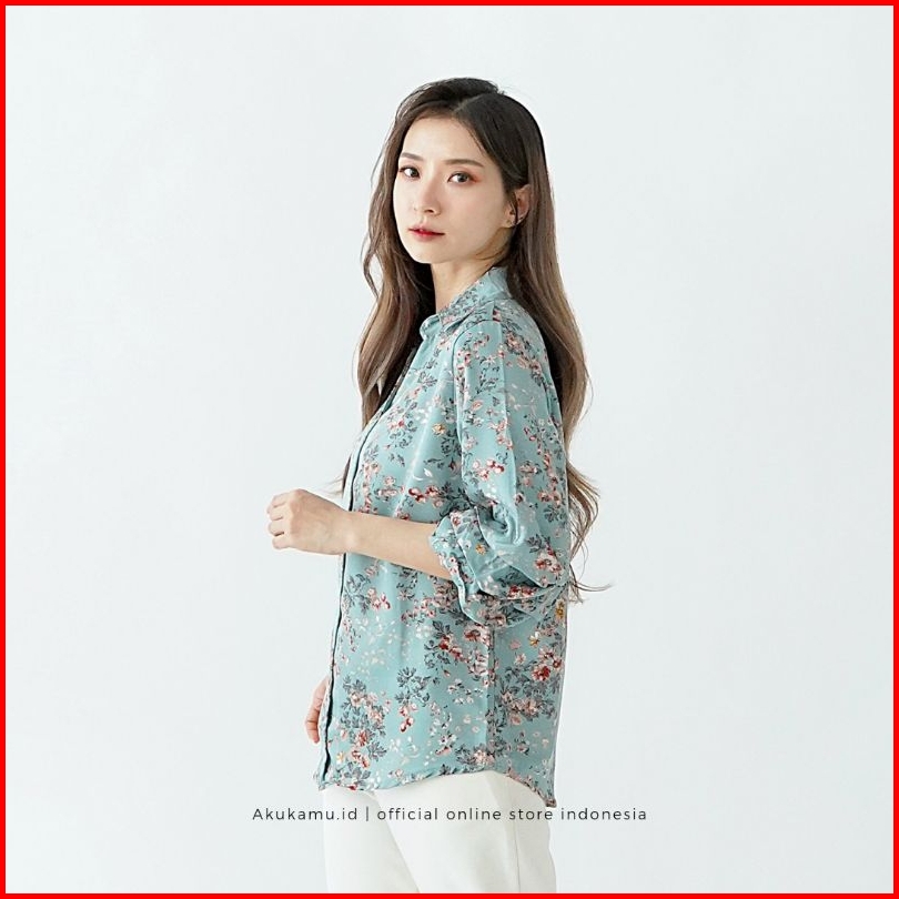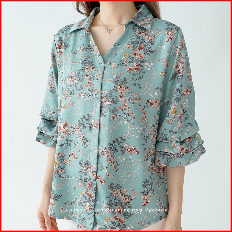 Kemeja Wanita Lengan Panjang 3 4 Motif Print Bunga Premium Baju Atasan Pakaian Cewek Blouse Korea Kasual Formal Shirt Ba