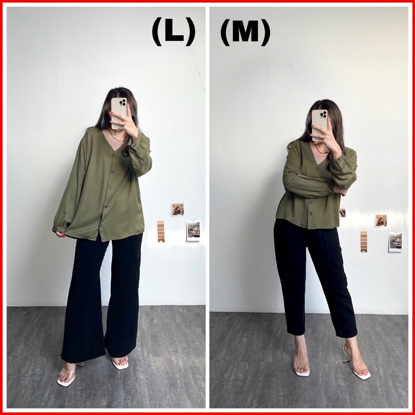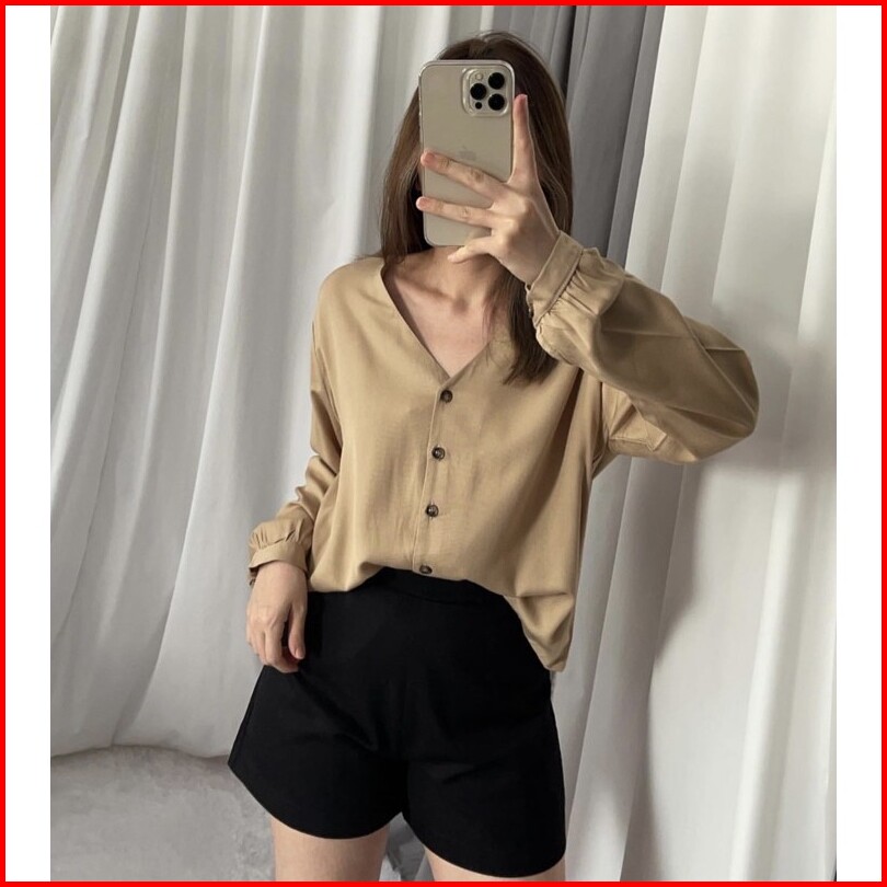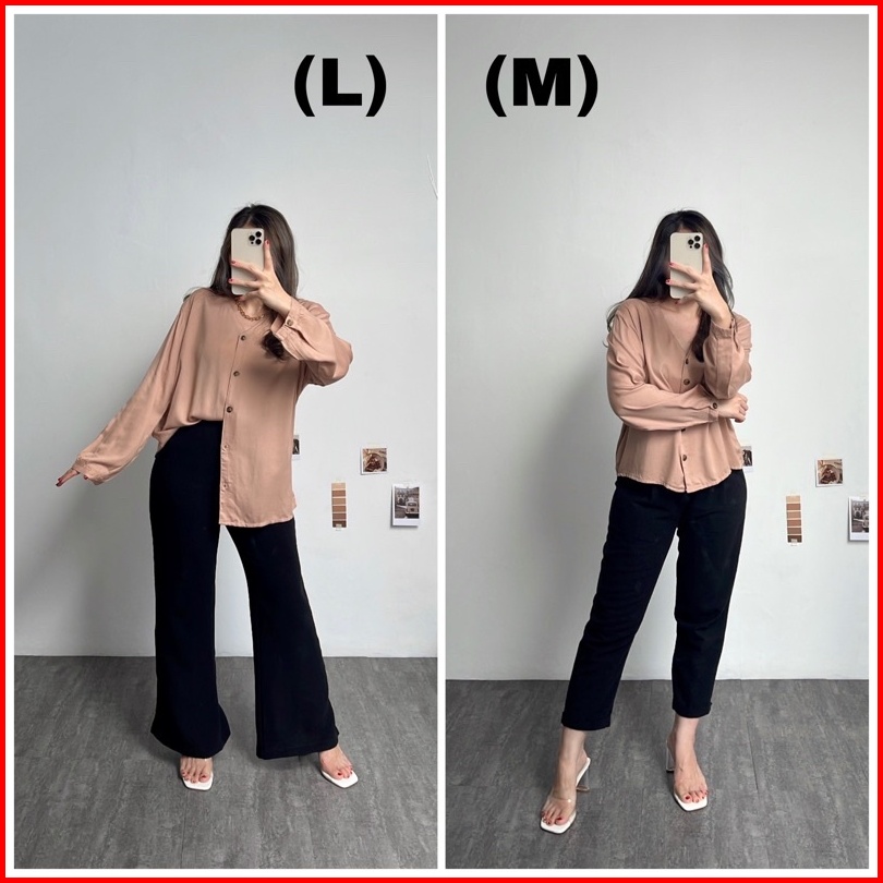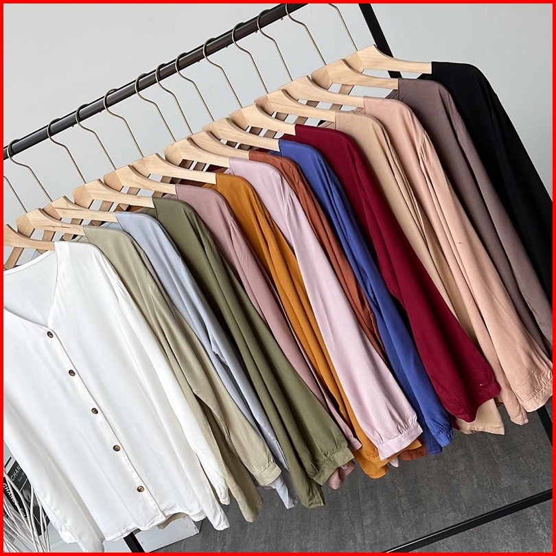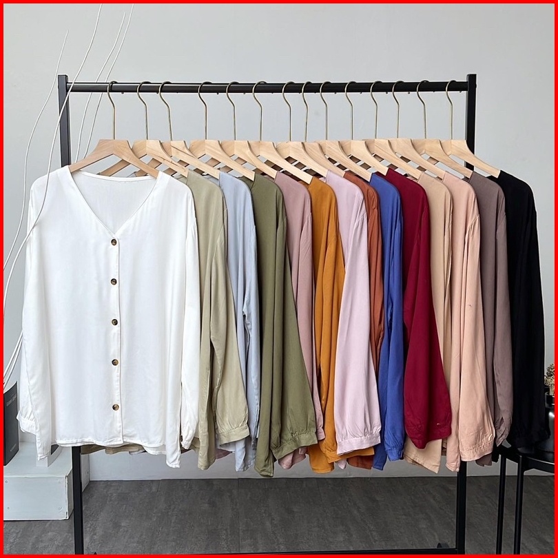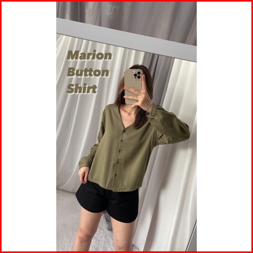 Marion Button Shirt Fashion Kemeja Basic Oversized Atasan Lengan Panjang Blouse Wanita Atasan Wanita Outer Nyaman Kemeja