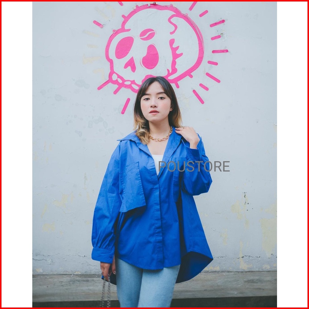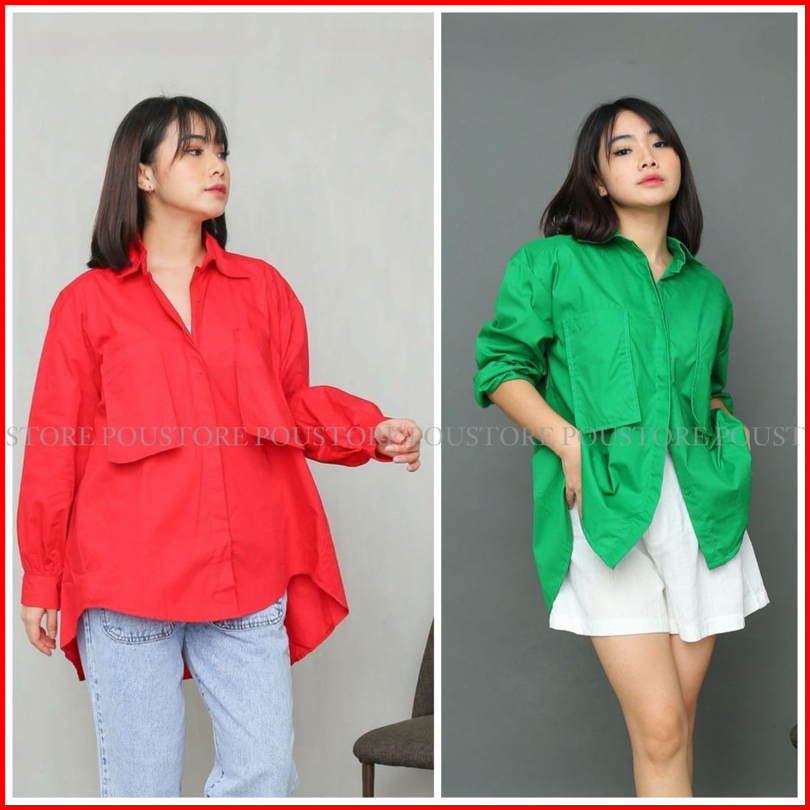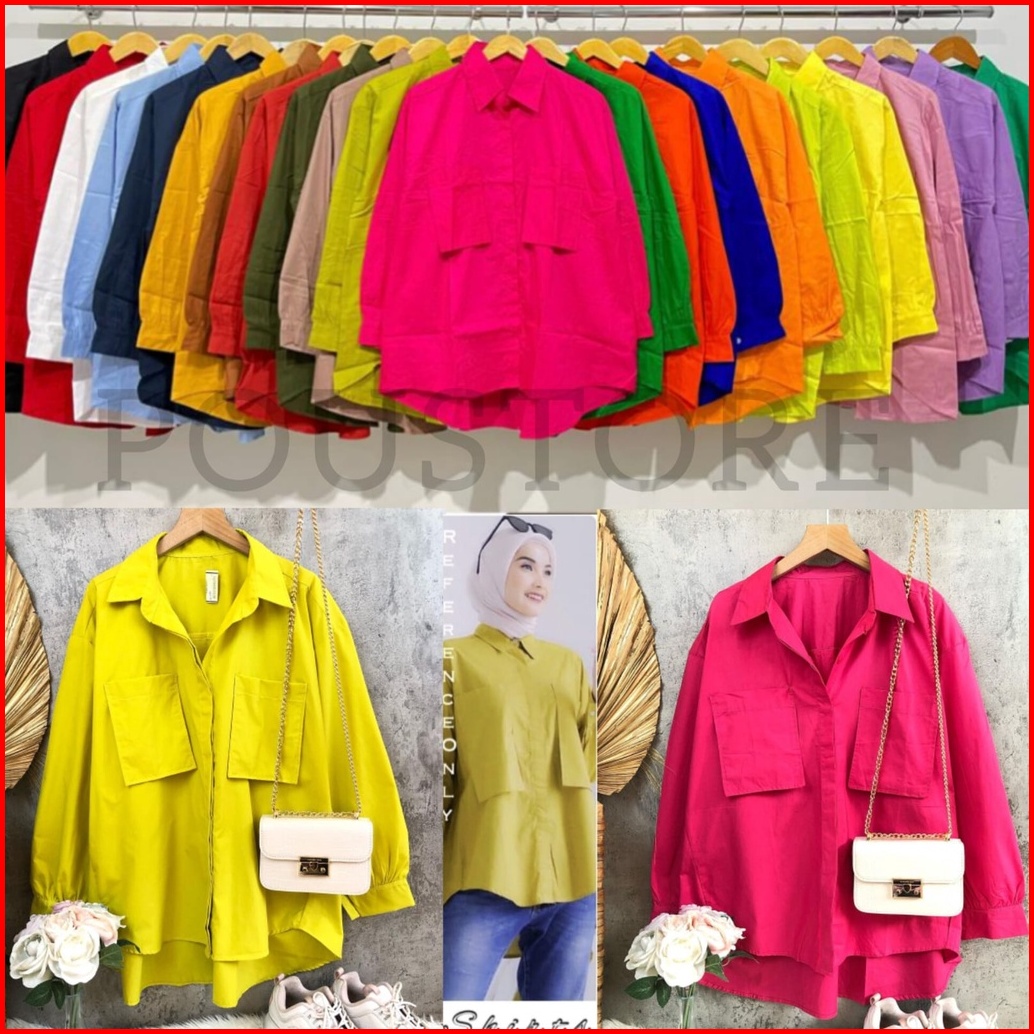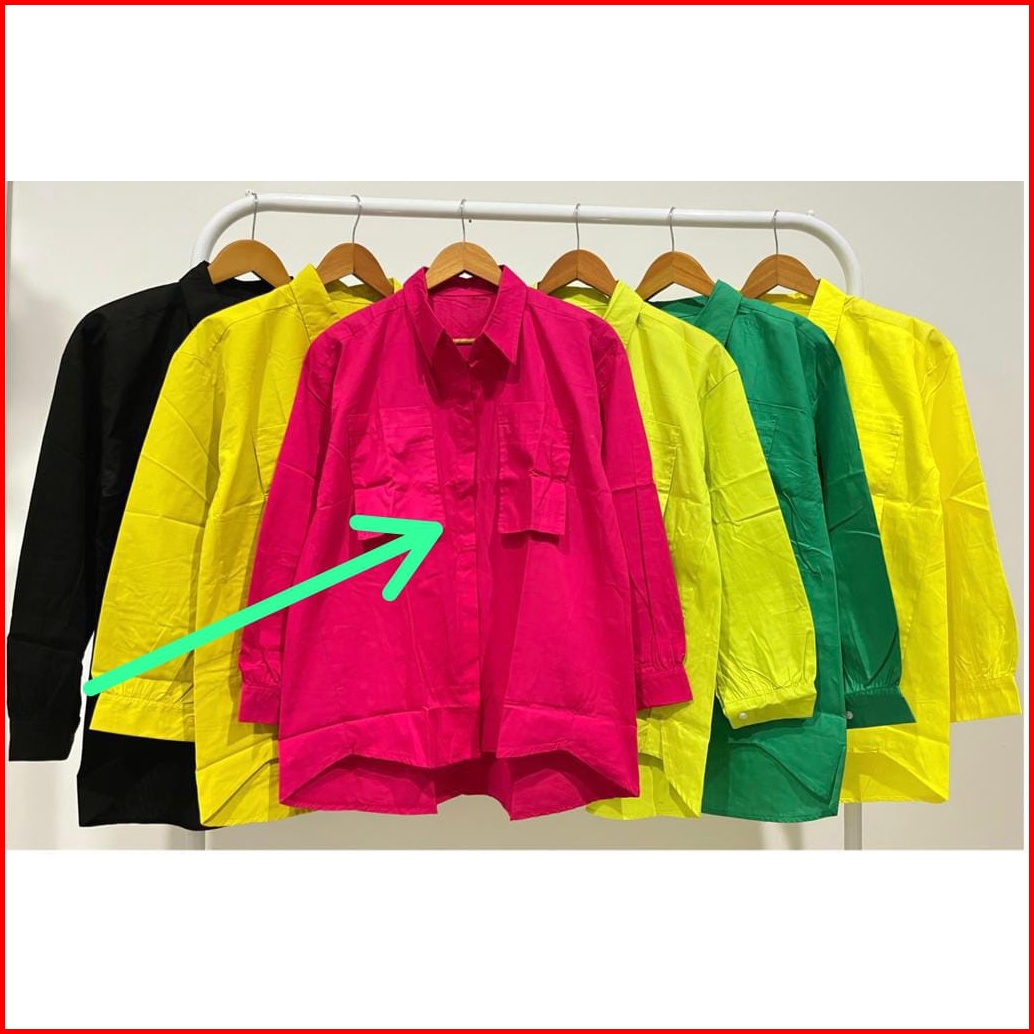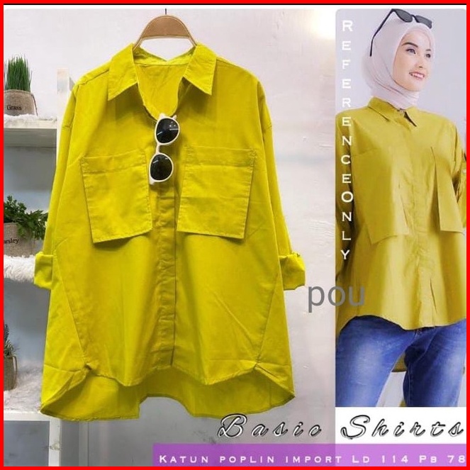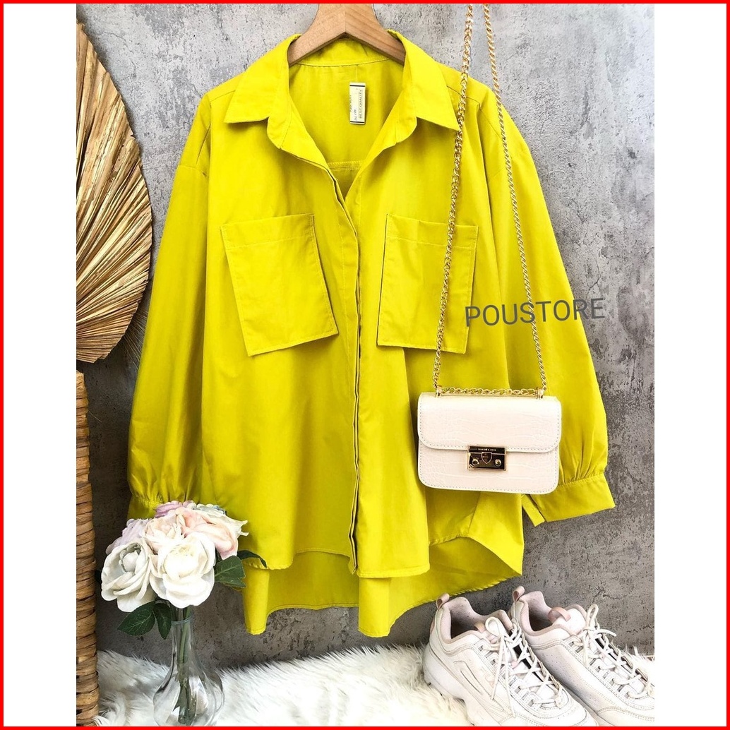 Spesial Kemeja Hanging Poket Lemon Lime Bahan Poplin Import Warna Kekinian Poustore Fashion Wanita