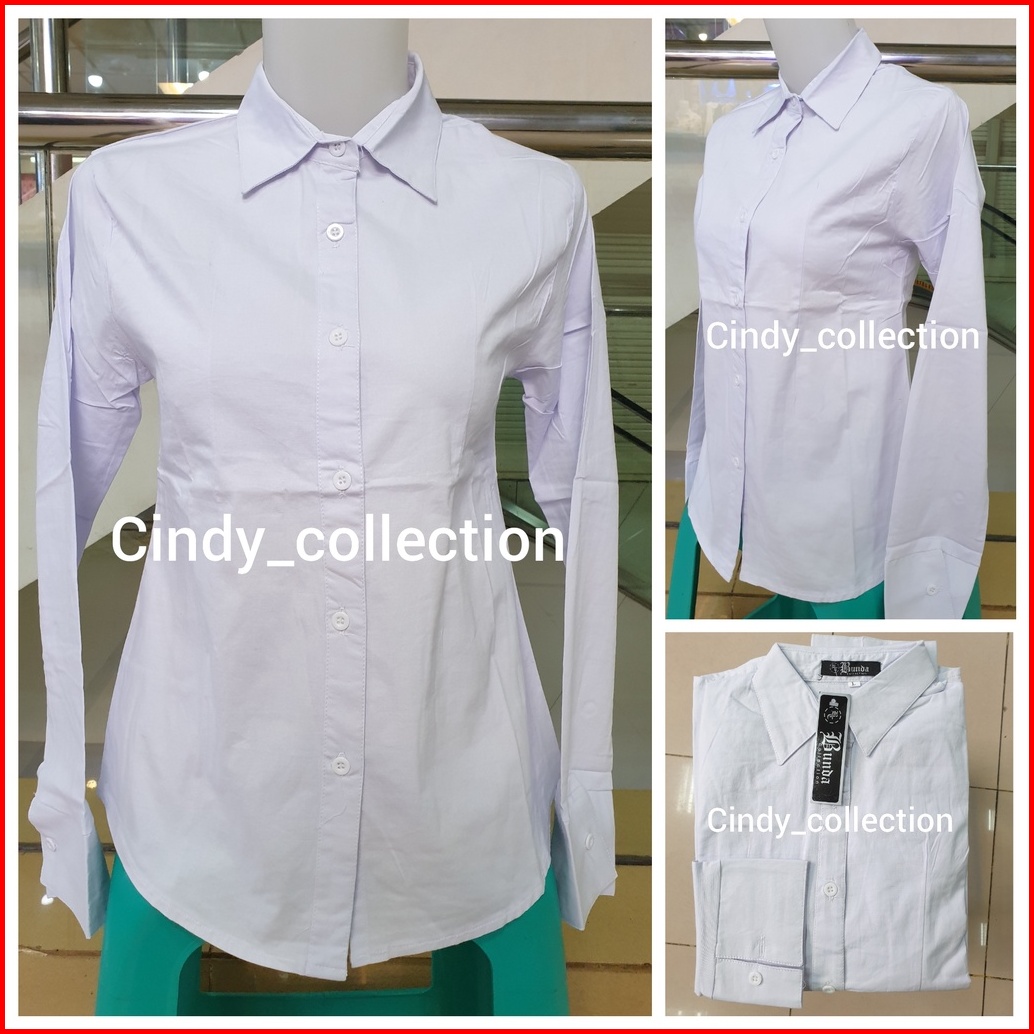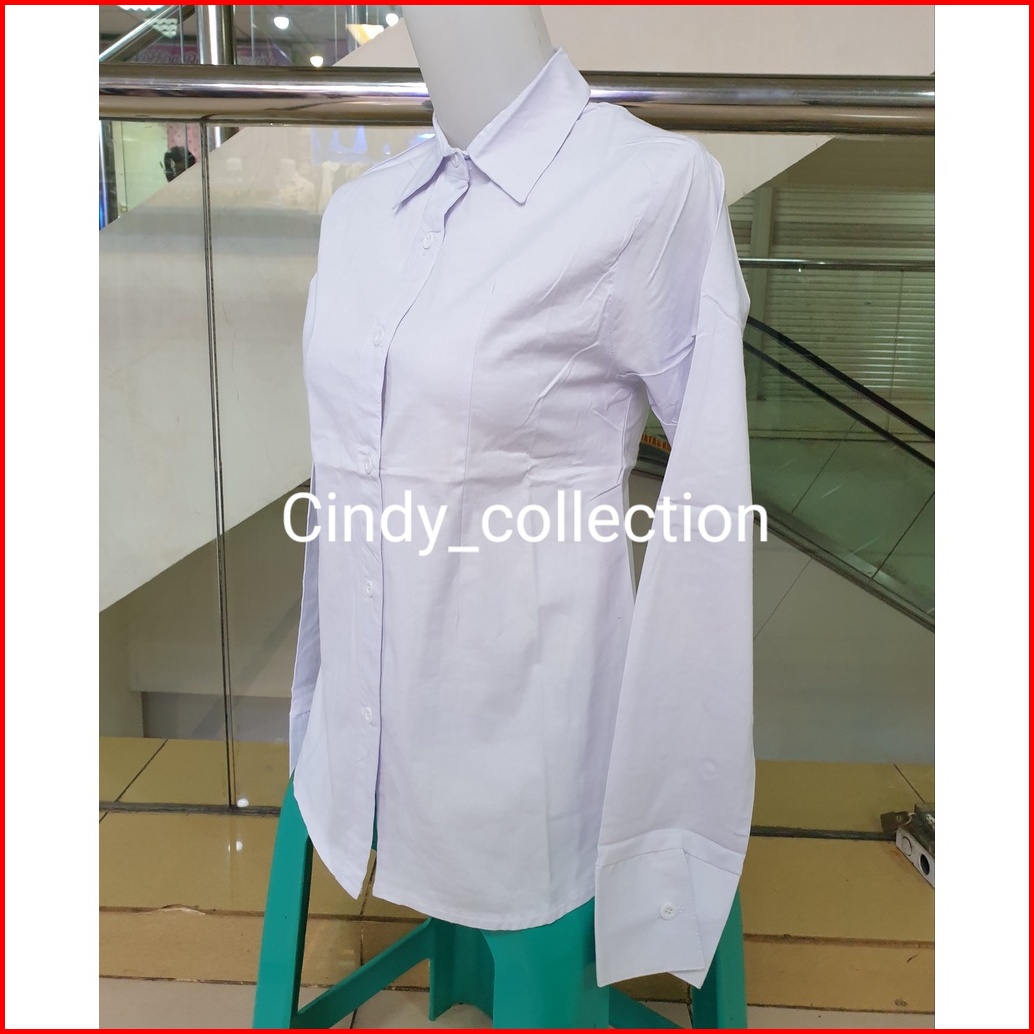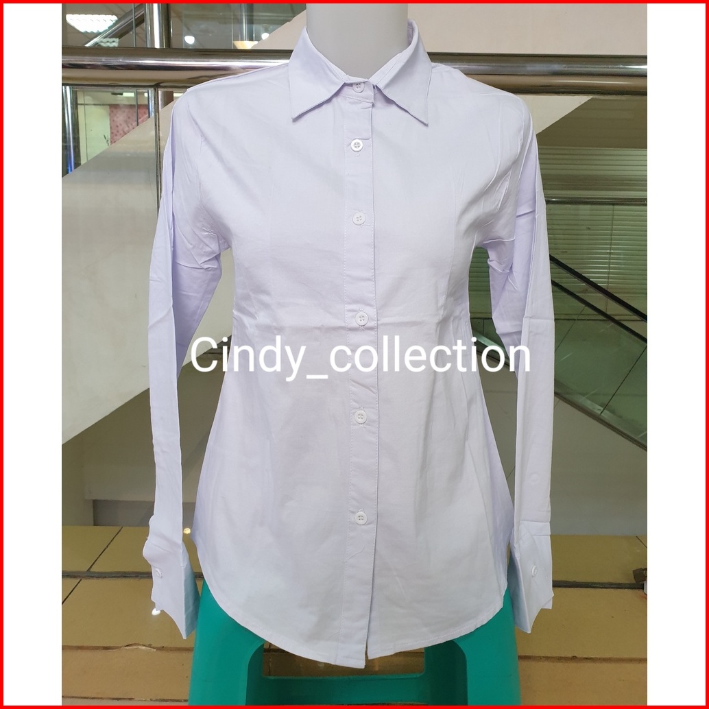 Kemeja Putih Polos Wanita Kantor Kerja Formal Katun Stretch Lengan Panjang Kemeja Cewek Putih Kantor Kerja Formal Standa