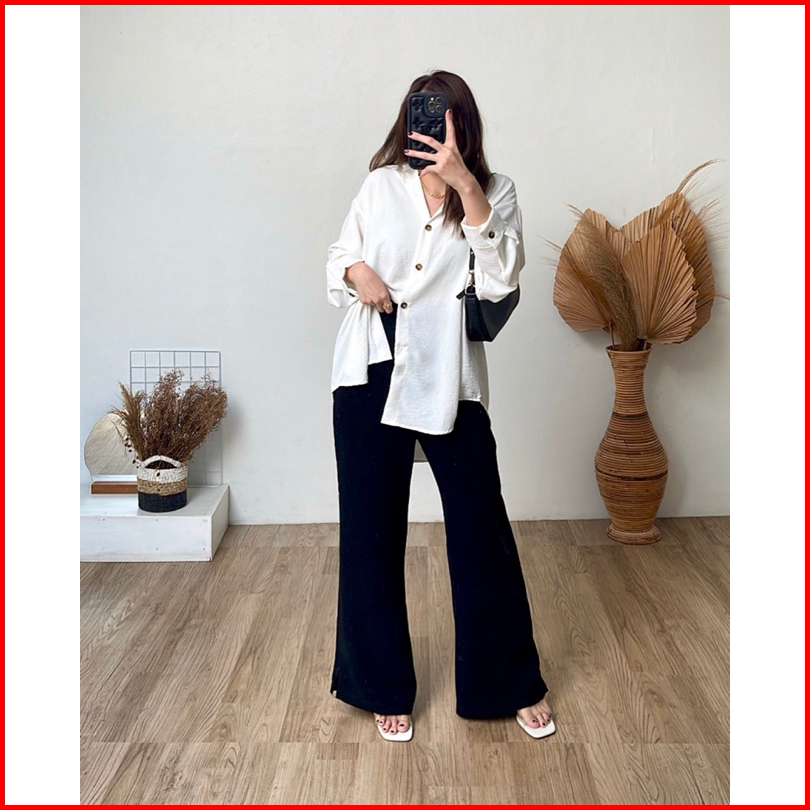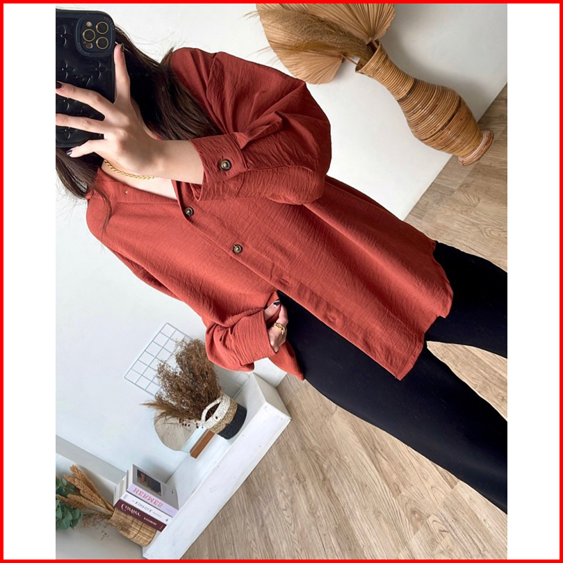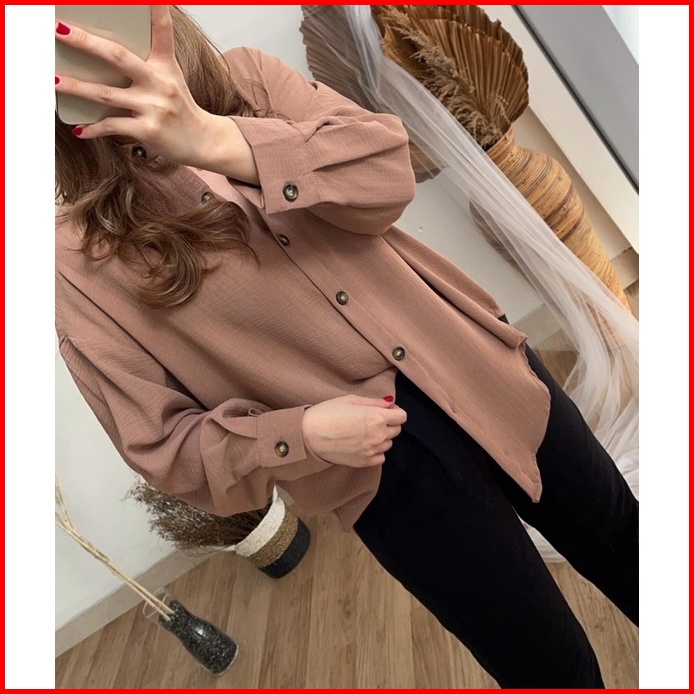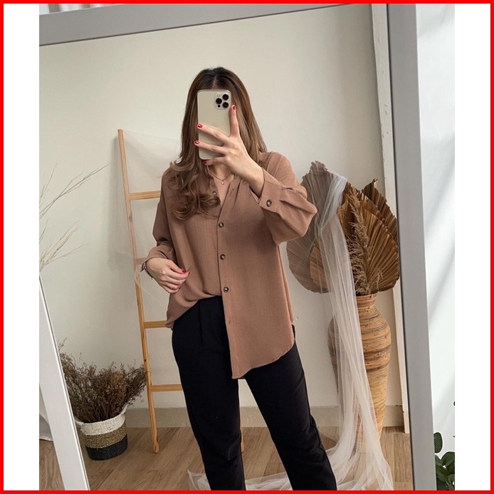Quella Longshirt Fashion Kemeja Basic Oversized Atasan Lengan Panjang Blouse Wanita Atasan Wanita Outer Nyaman Kemeja Ka