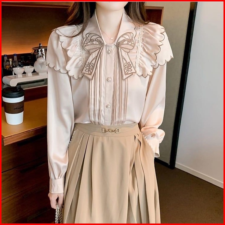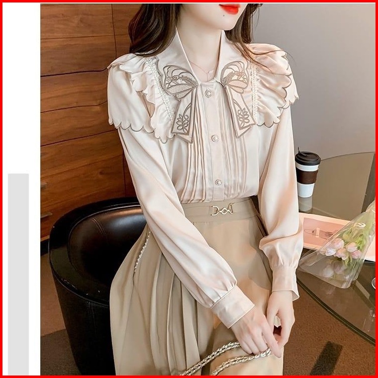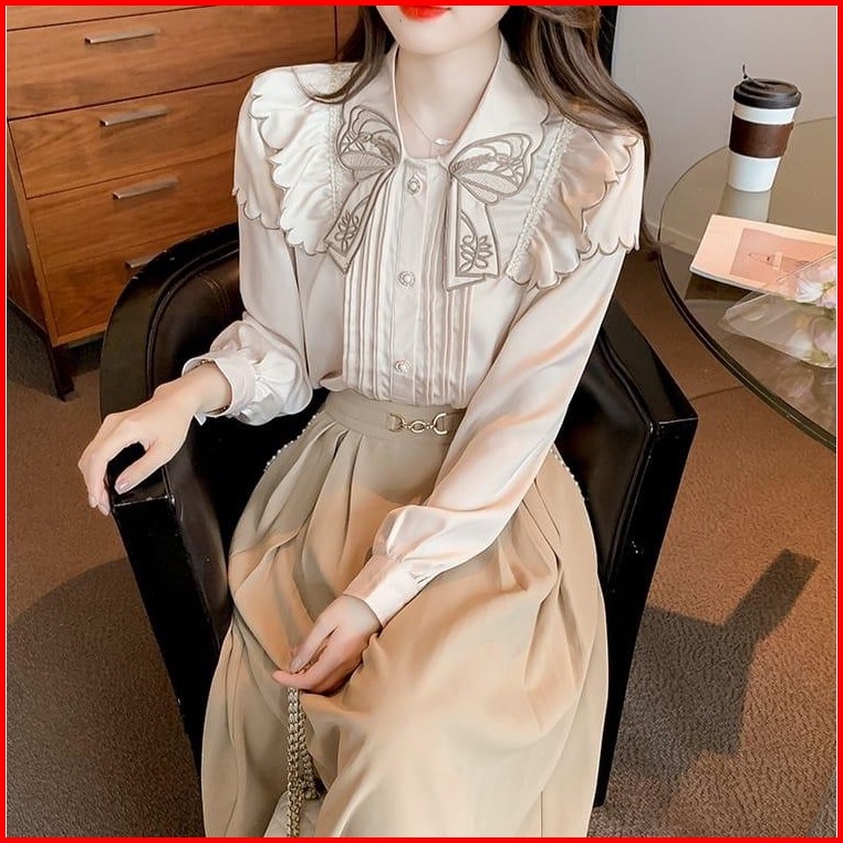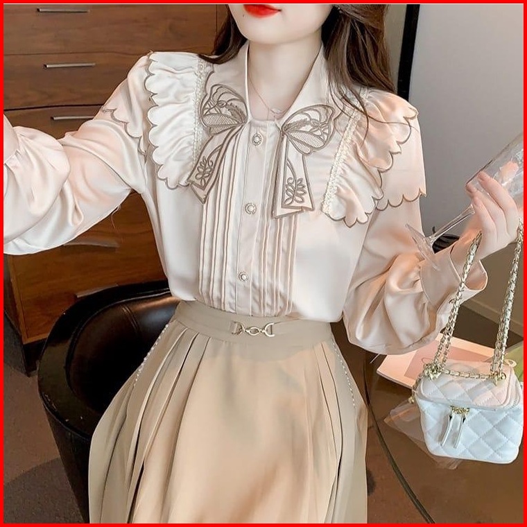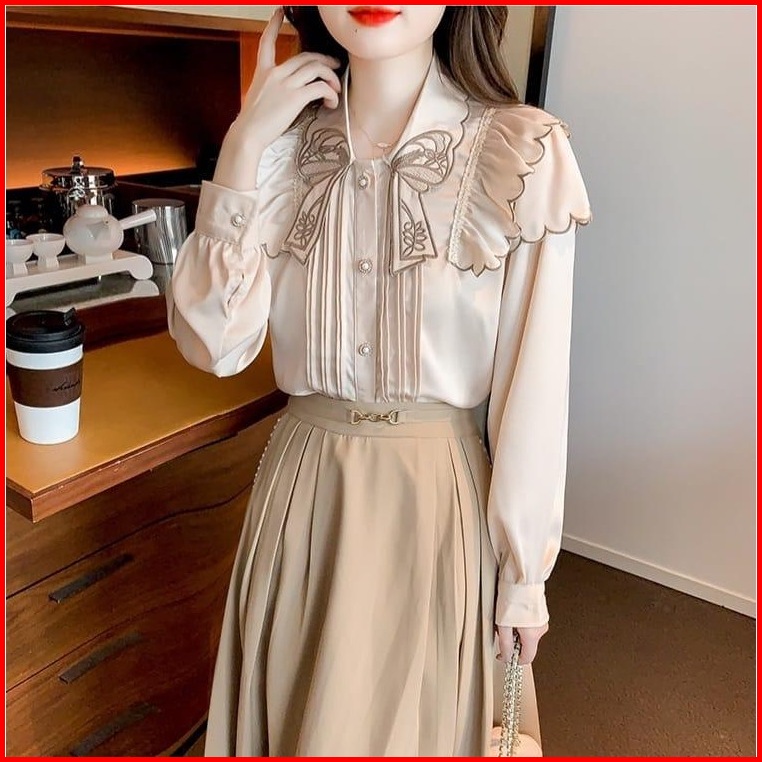 Ks7744 Atasan Wanita Kemeja Eugine Embroidery Collar Korean Fashion Import 7744