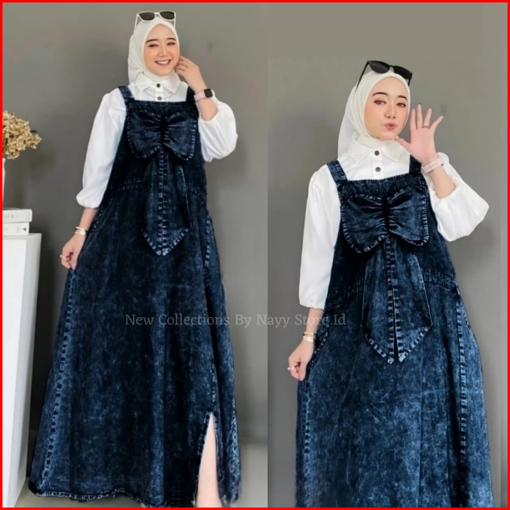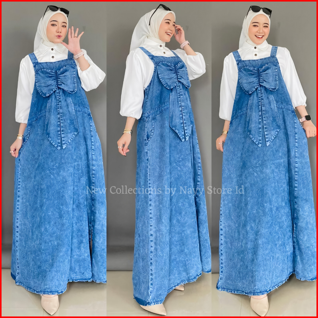 Baju Kodok Overall Overal Dress Jeans Wanita Premium Terbaru 2025 Ld 100 P 135 Pita Kupu Overall Remaja Allsize