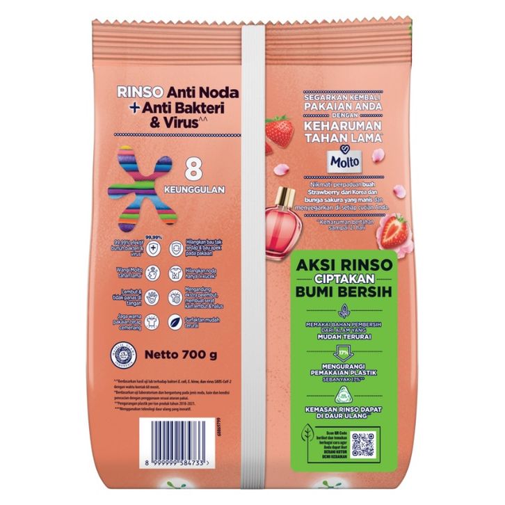 DETERGENT RINSO MOLTO KOREAN STRAWBERRY 700G (1 DUS ISI 12)