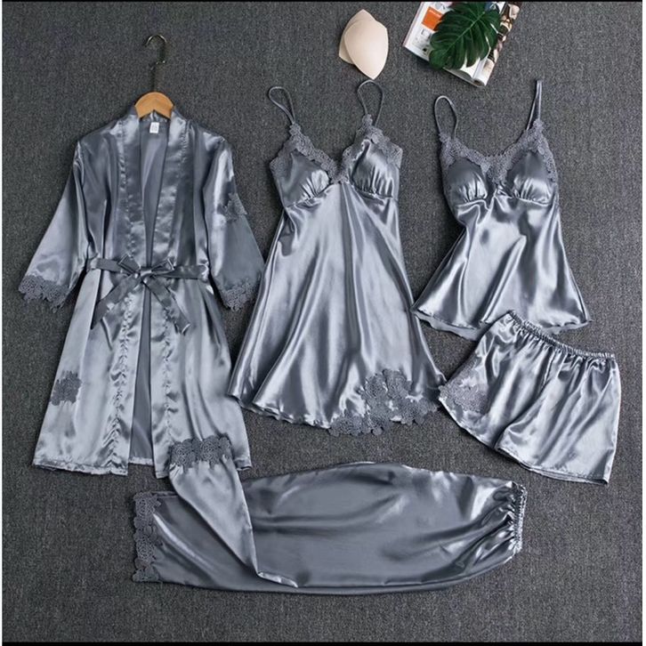 PIYAMA SET KIMONO 5 IN 1/ BAJU TIDUR SATIN WANITA HIGH QUALITY PREMIUM