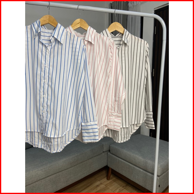 Kemeja Wanita Ld 110 Kemeja Katun Salur Wanita Kemeja Salur Oversizes Stripe Shirt