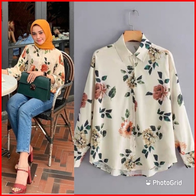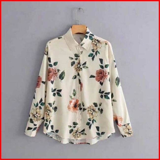 Restock Kemeja Putih Flower Import Ks4131