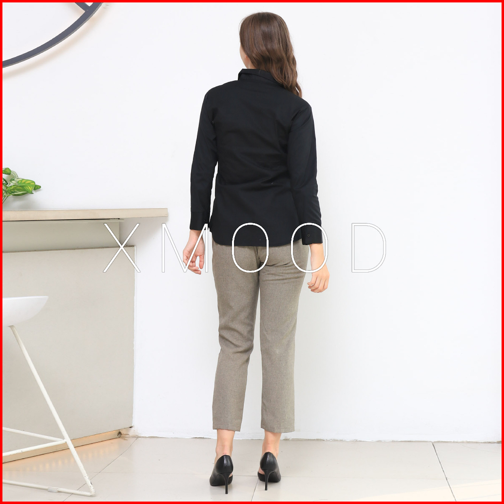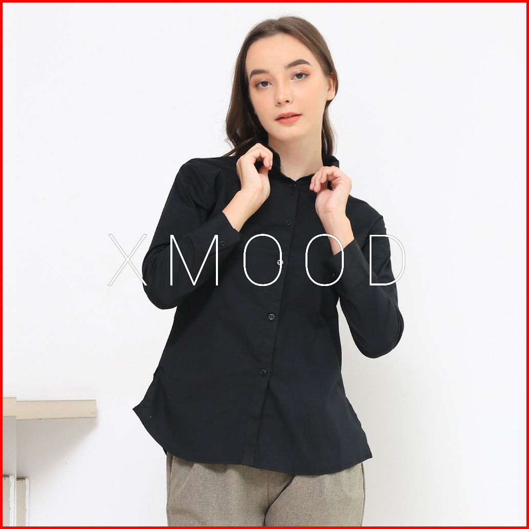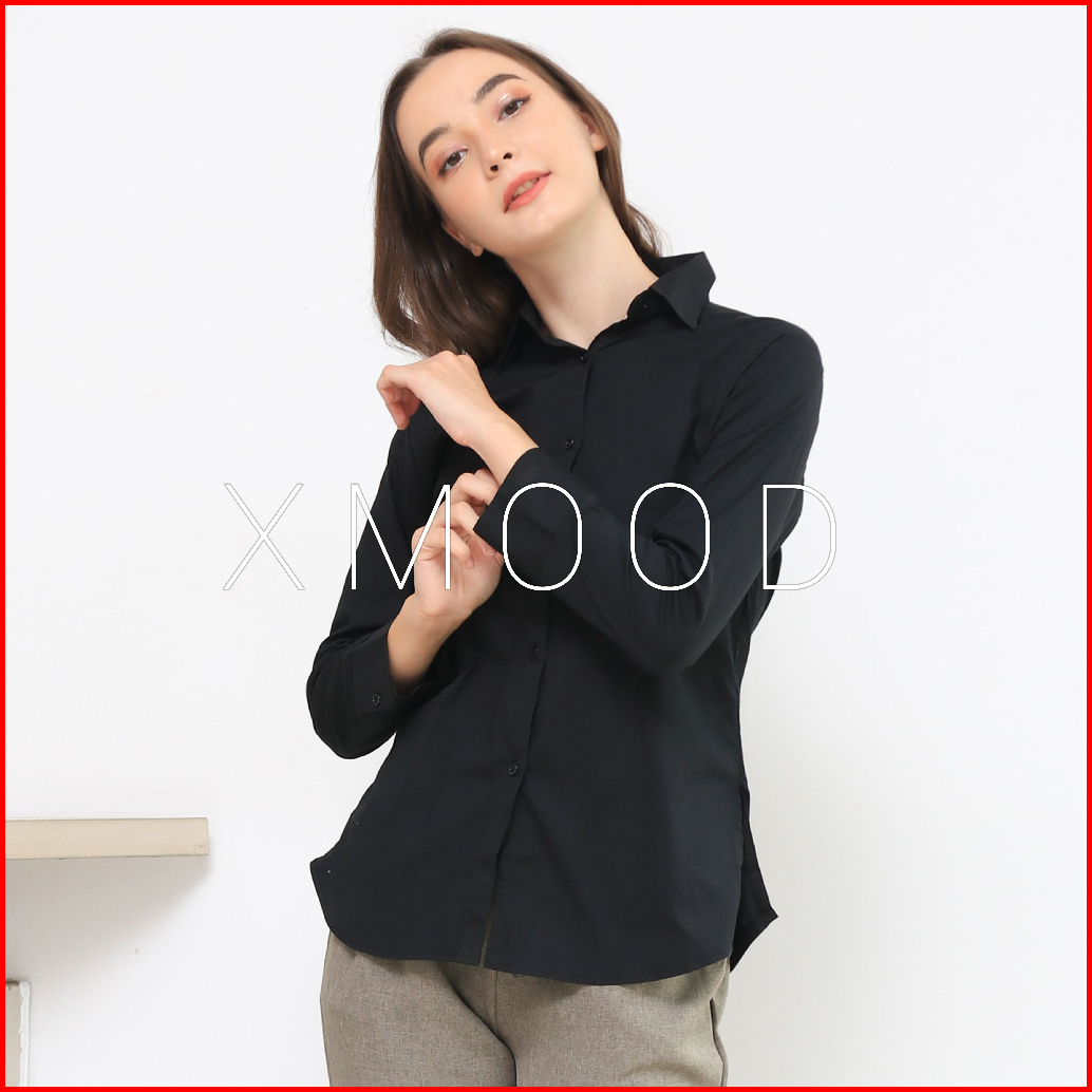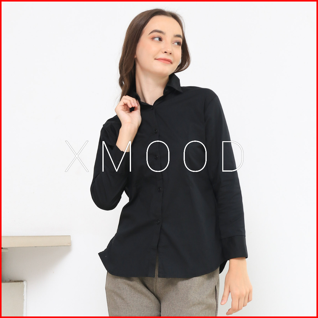 Xmood - Kemeja Polos Wanita Pola Kecil Kemeja Putih Wanita Bahan Katun Stretch