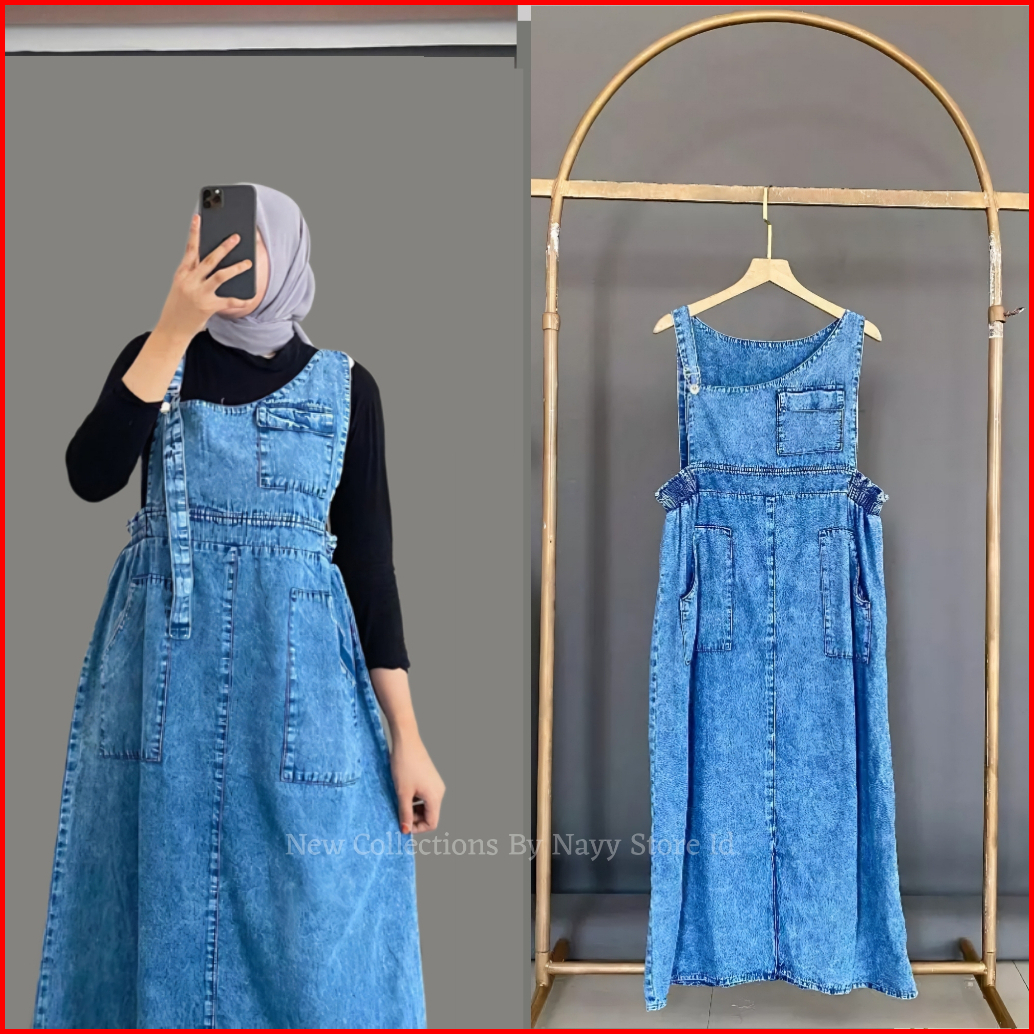 Baju Kodok Overall Miring Overal Rok Dress Jeans Wanita Polos Korean Style Premium Terbaru 2025 Lp 100-130 Pj 125 Overal