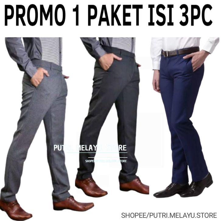 promo celana kerja beli 1 paket isi 3 hemat ongkir Celana Bahan Formal/Celana Kantoran Pria 06