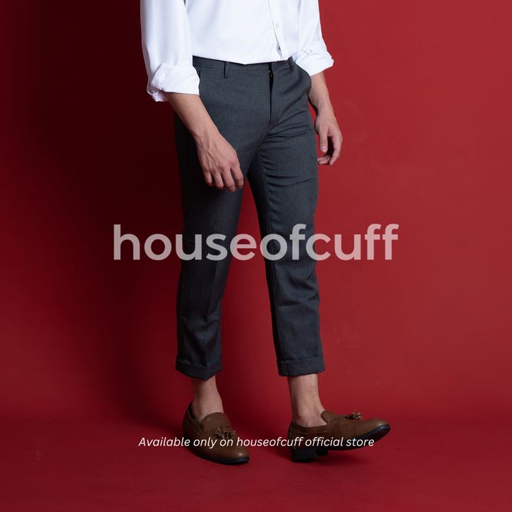 BIG SIZE Celana Ankle / Cropped Pants Slim fit Celana kerja bahan / Sirwal Abu tua