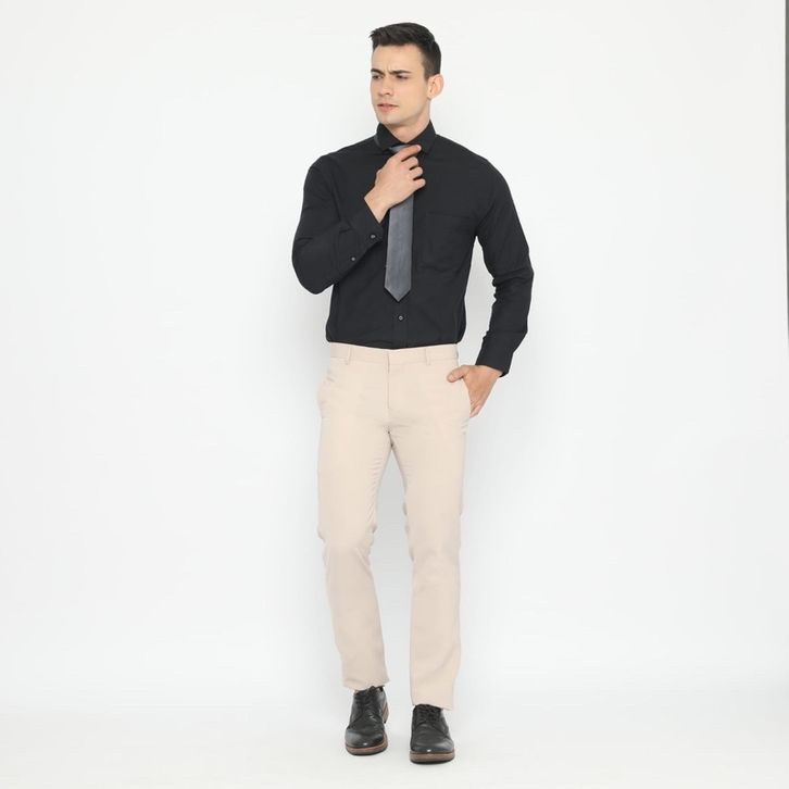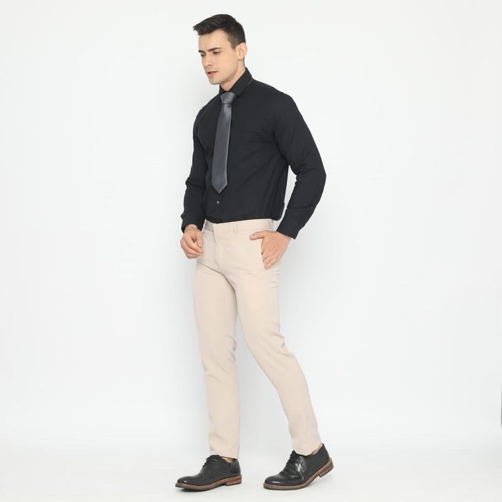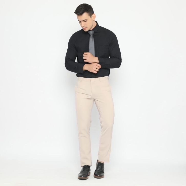 e Male Celana Bahan Premium Cream Formal Straight Cut Slim Fit
