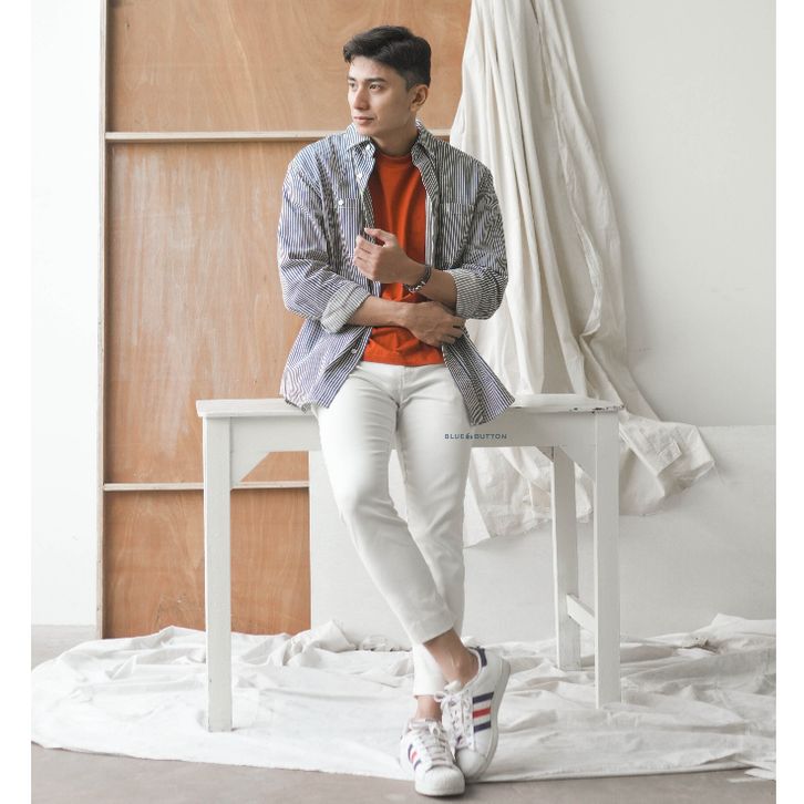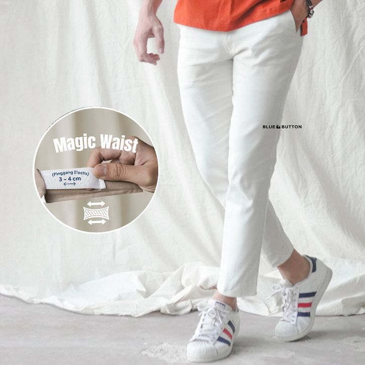 BlueButton Celana Chino Celana Ankle Pants Slim Fit Ivory White Celana Putih Pria