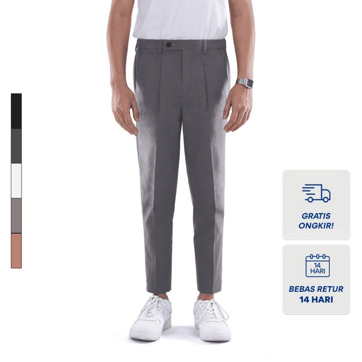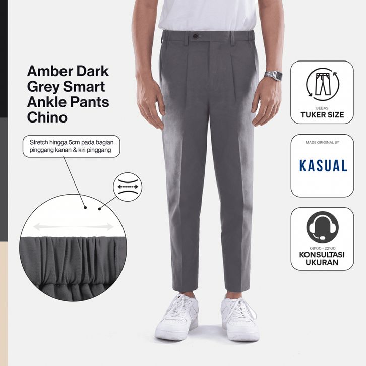 Kasual Celana Amber Dark9rey Smart Waist Ankle Chinos Stretch Pria