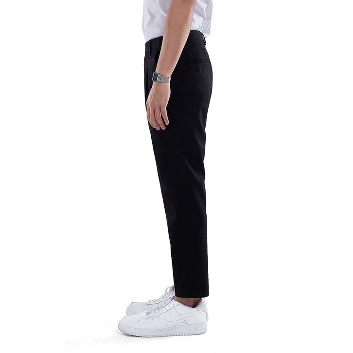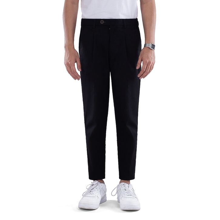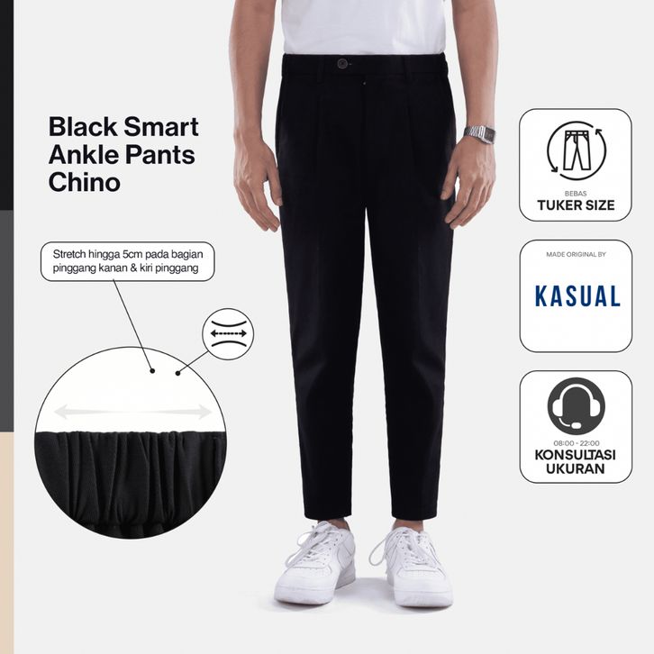 Kasual Celana Black Smart Waist Ankle Chinos Stretch Pria