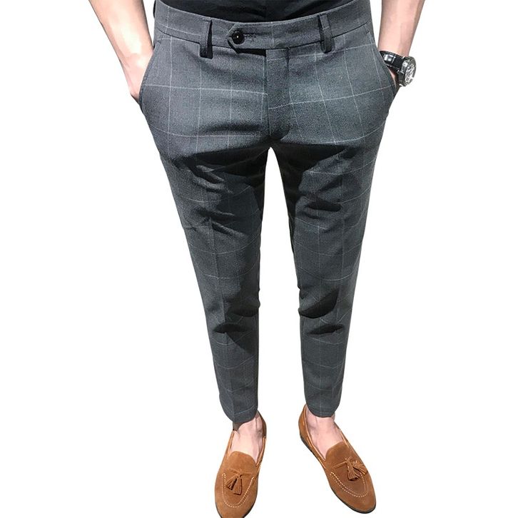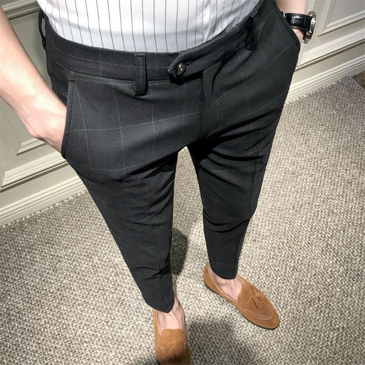 【Hot sellers】Plaid Pants Men's Korean Fashion Casual Pants Slim Fit Feet Pants British Suit Pants