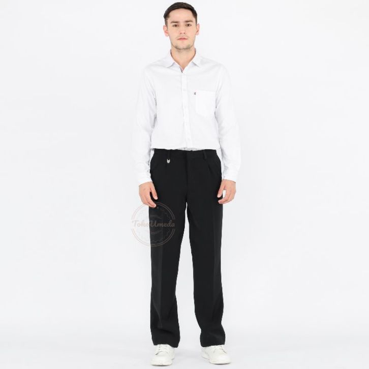 Celana Bahan Pria Formal Reguler Fit Standar Panjang Kerja Kantor Hitam Dasar Pria