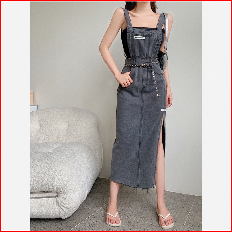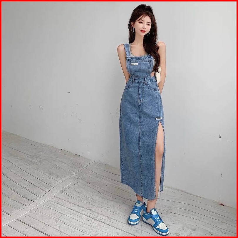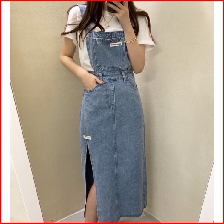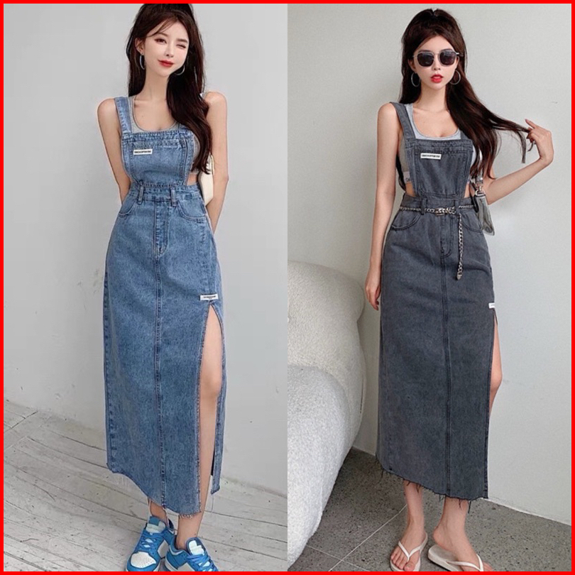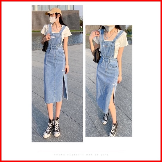 Overall Skirt Denim Rok Kodok Wanita Split Mx568