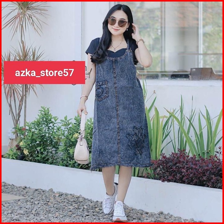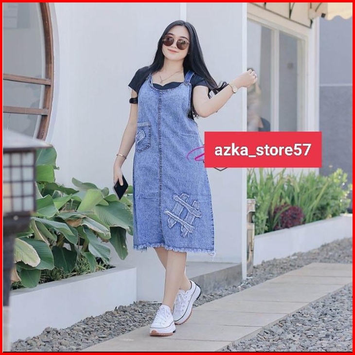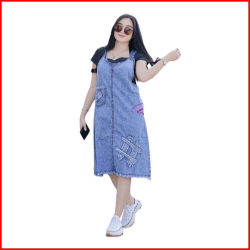 Overall Jeans Mini Overall Pendek Fashion Dress Jin Wanita