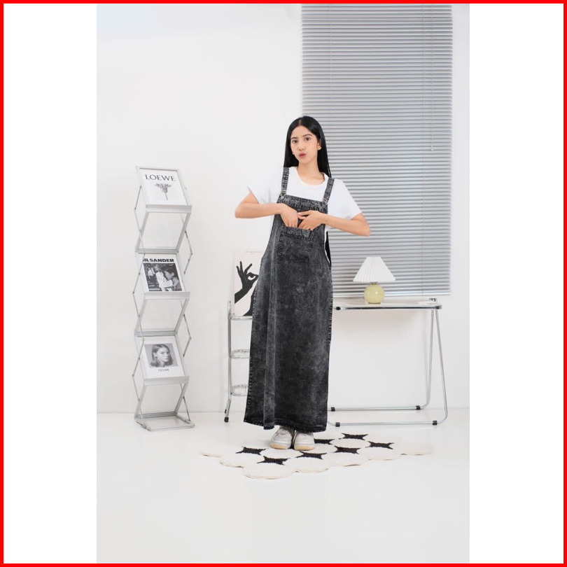 Azzastore - Overall Jumpsuit Jeans Wanita Polos Overall Denim Panjang Polos