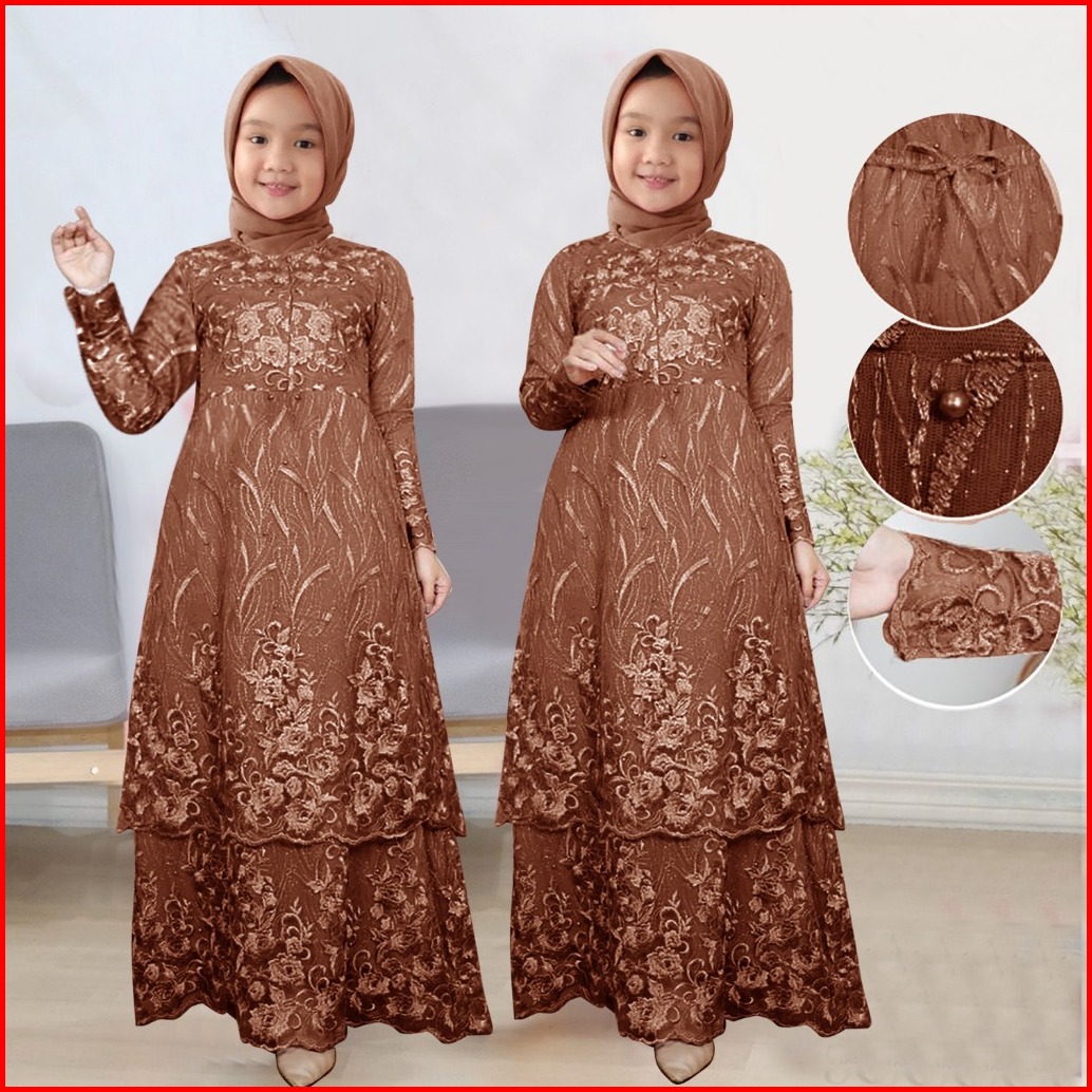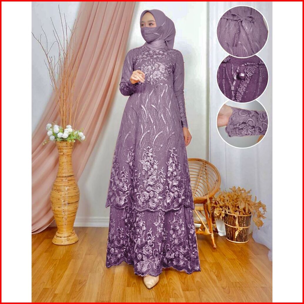 Maxi Vira M L Xl Xxl Xxxl Gamis Brukat Dress Susun Full Brukat Busui Friendly Gamis Pesta Kondangan Bridesmaid Tile Mewa