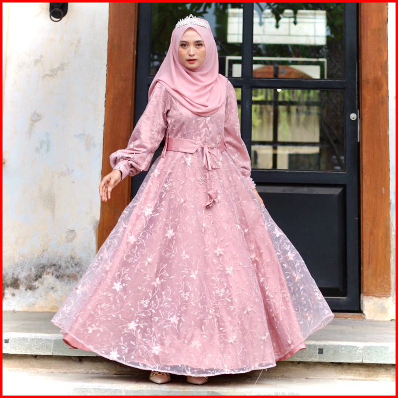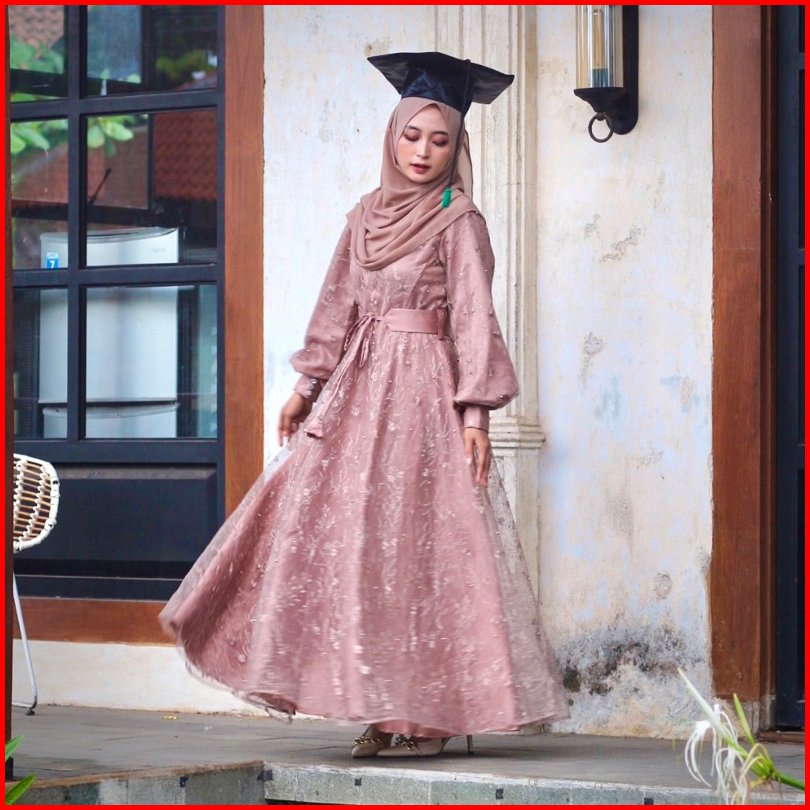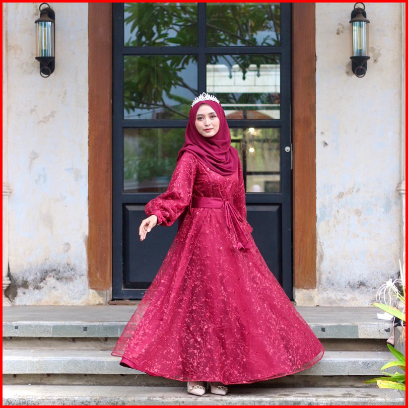 Anggun Dress - Wedding Dress - Gaun Wisuda - Dress Pesta Akad Brukat Lebaran Kondangan Mewah Full Brokat Dan Busui Frien