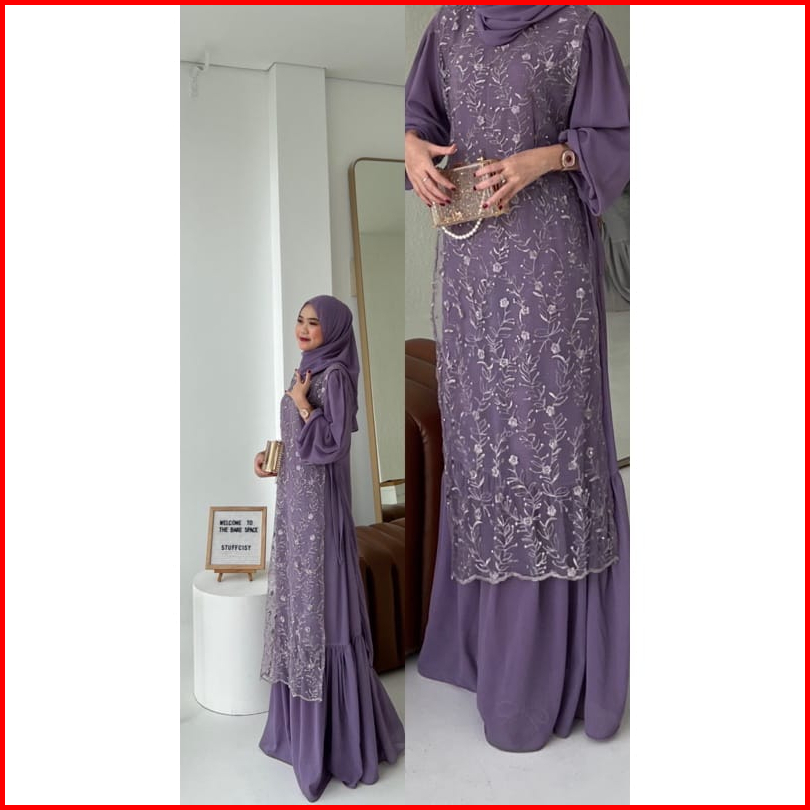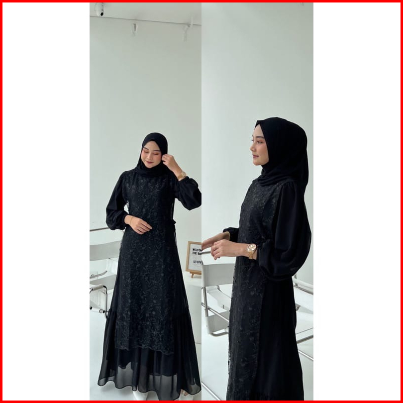 New Sintia Dress Inner Outer Brukat Tile Premium Oneset Dress Kondangan Ceruty Brukat Plus Outer