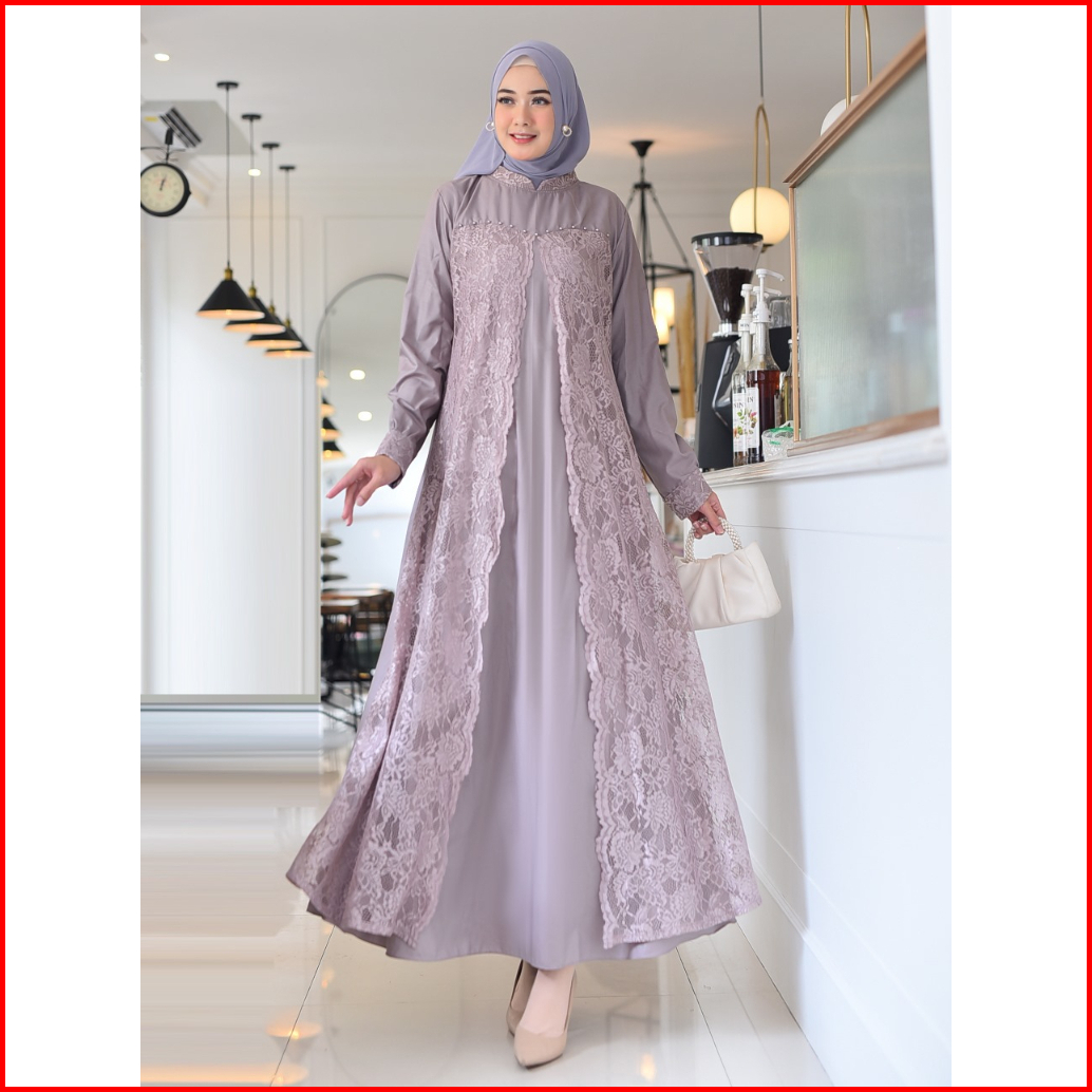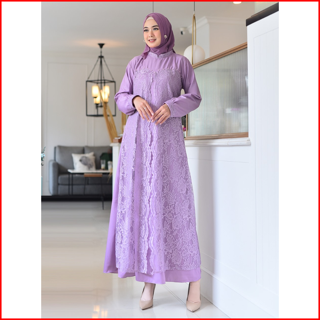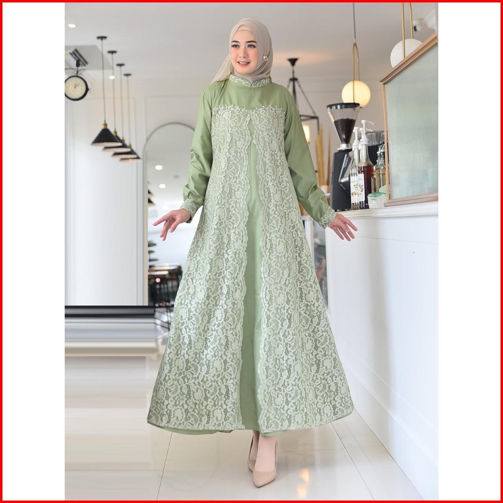 Gamis Jumbo Brukat Sabrina Maxi Dress Bahan Toyobo Original Gamis Kondangan Mewah Pesta Dengan Payet Mutiara Adem Untuk