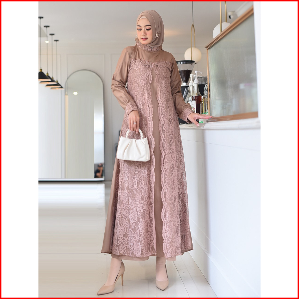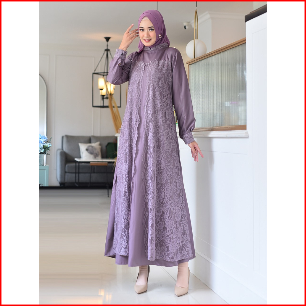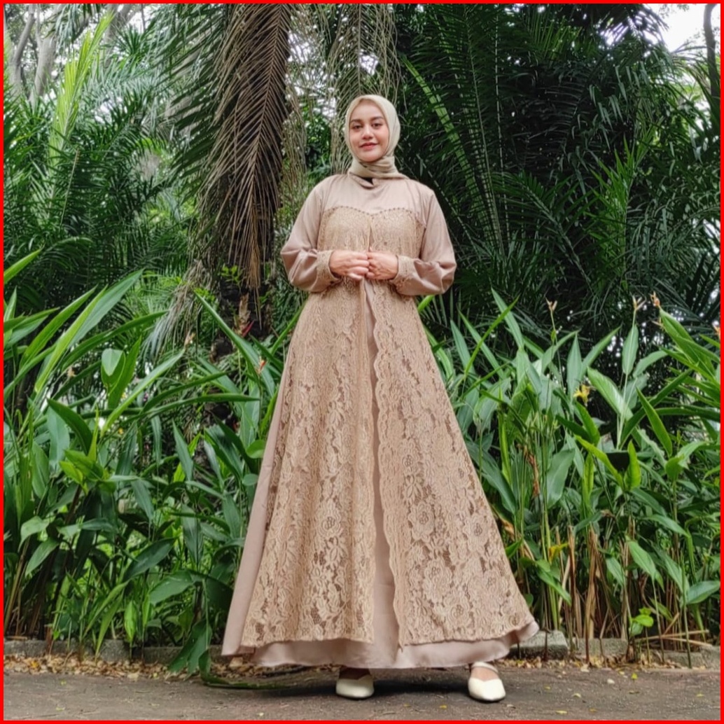 Gamis Jumbo Brukat Sabrina Maxi Dress Bahan Toyobo Original Gamis Kondangan Mewah Pesta Dengan Payet Mutiara Adem Untuk