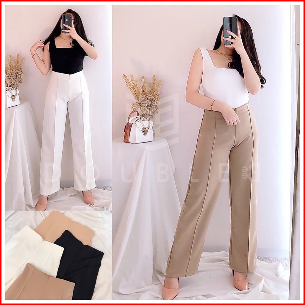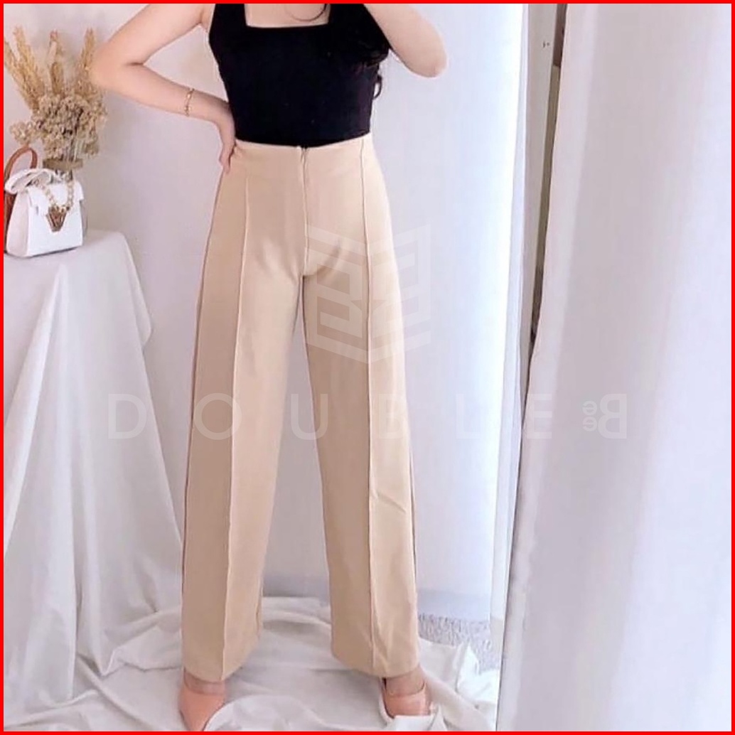 Celana Kulot Wanita Highwaist Terbaru Kekinian Viral Elegan Style Bahan Scuba Premium Tebal Dan Tidak Nerawang Ukuran M-