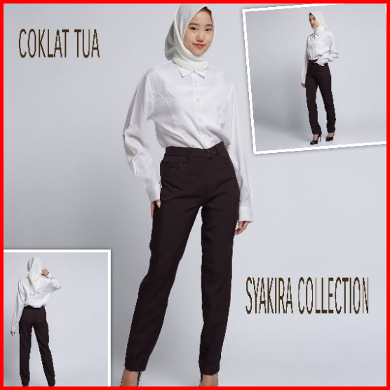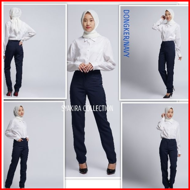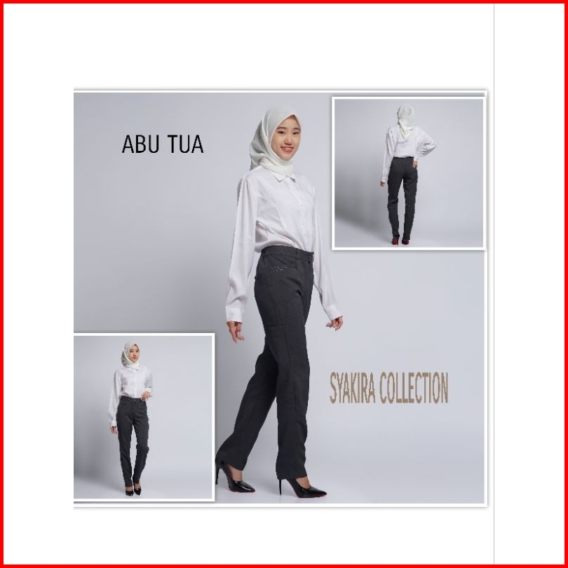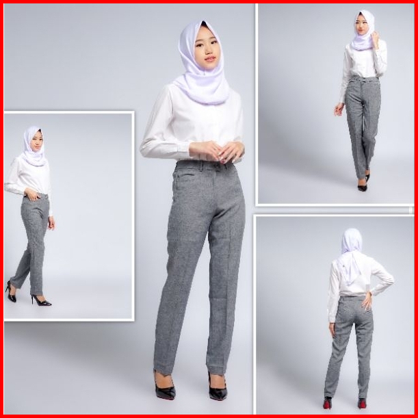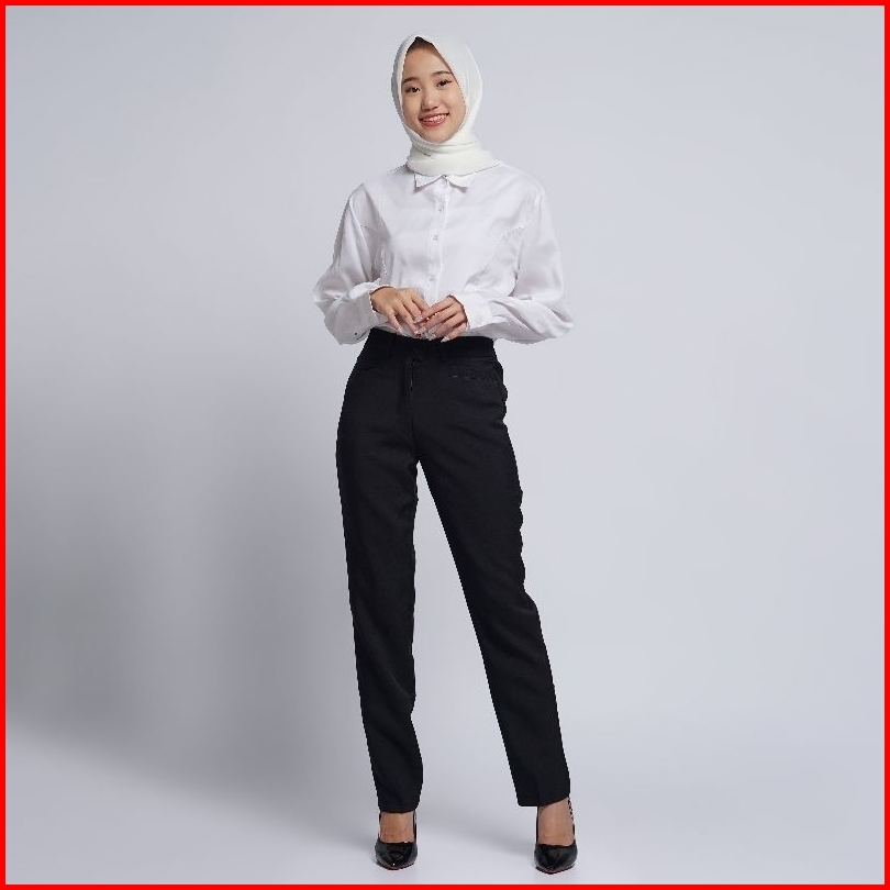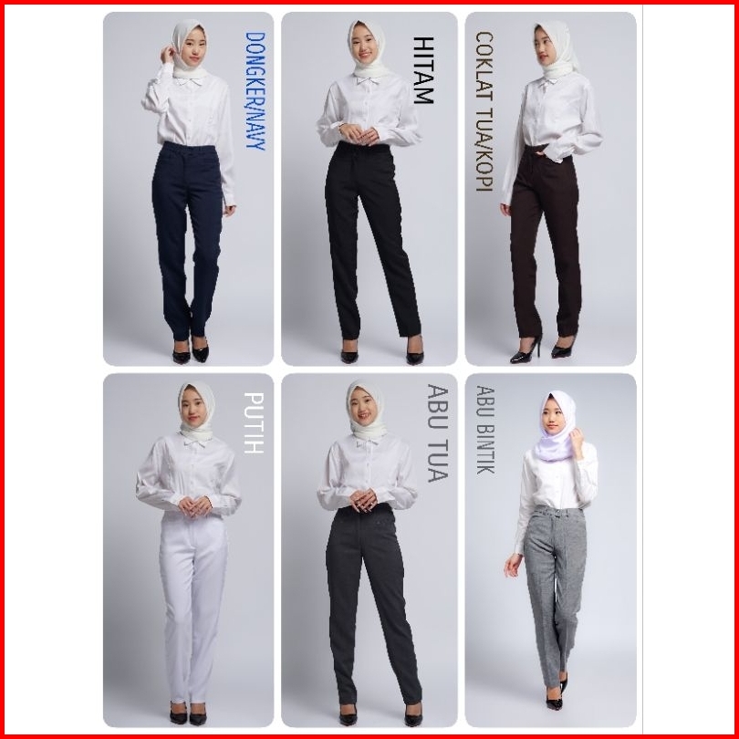 Celana Kerja Wanita Terbaru Reguler Resleting Polyester Premium Stretch Melar Impor Hitam Navy Abu
