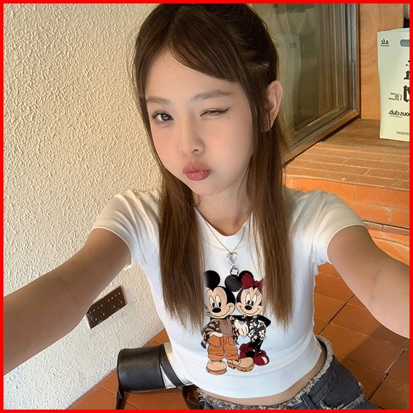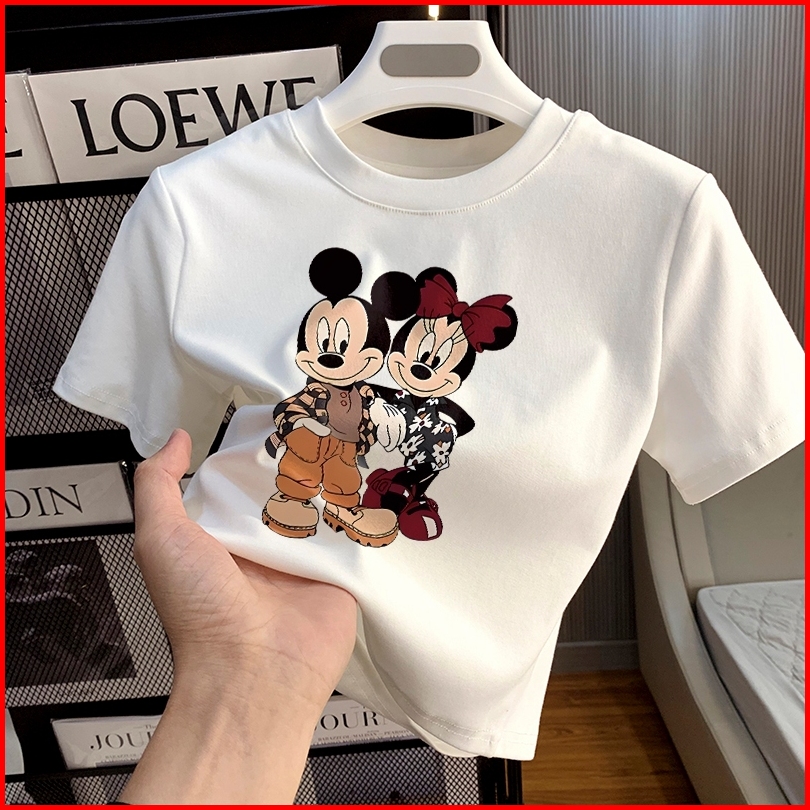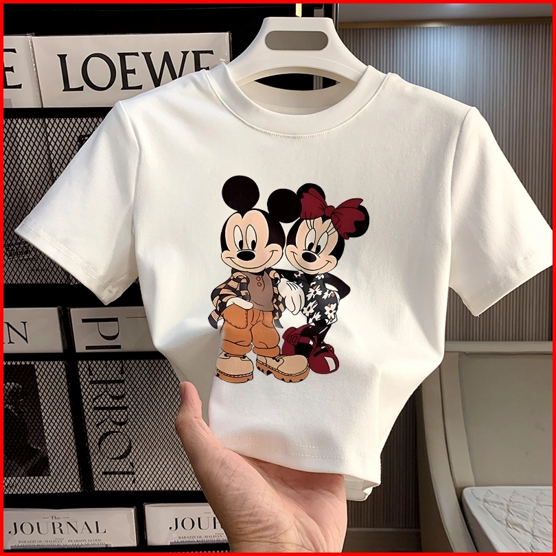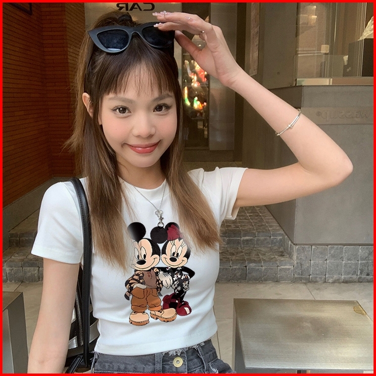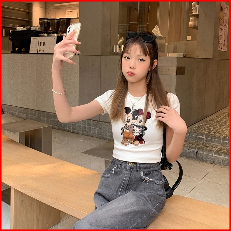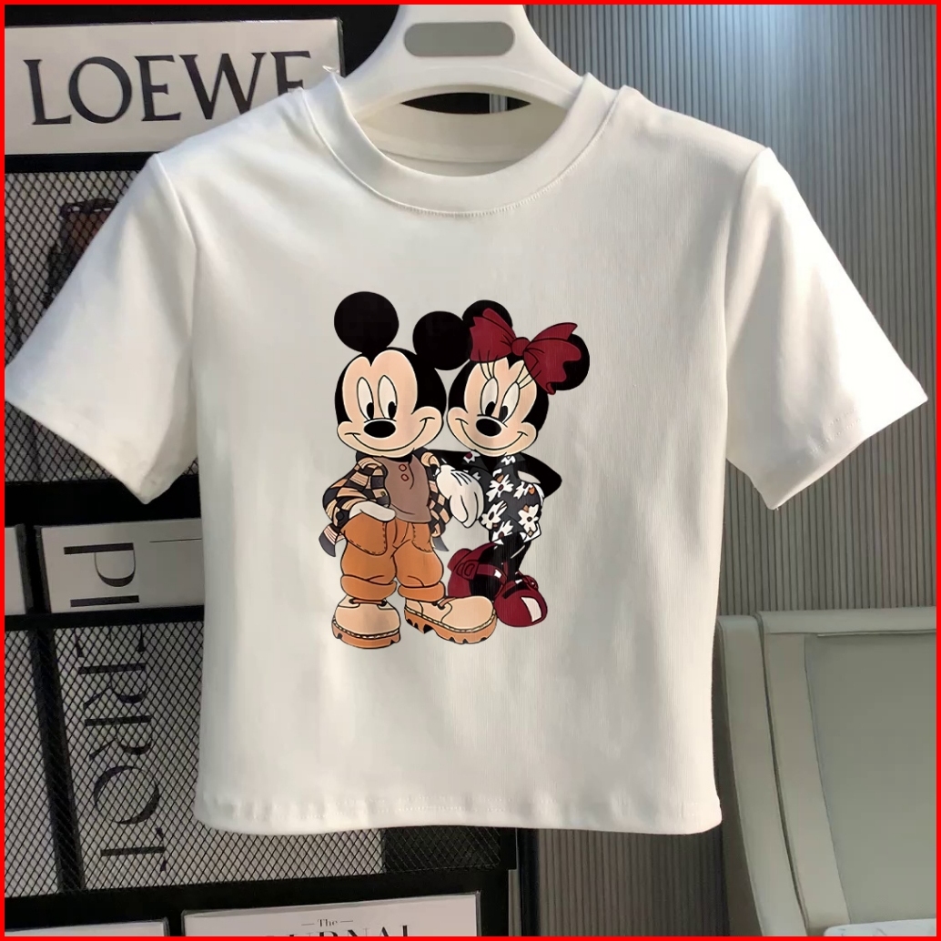 Misco T-shirt Crop Top Lengan Pendek Kaos Wanita Crop Top Korean Cartoon Mickey Kaus Crop Wanita Baju Atasan Wanita Terb