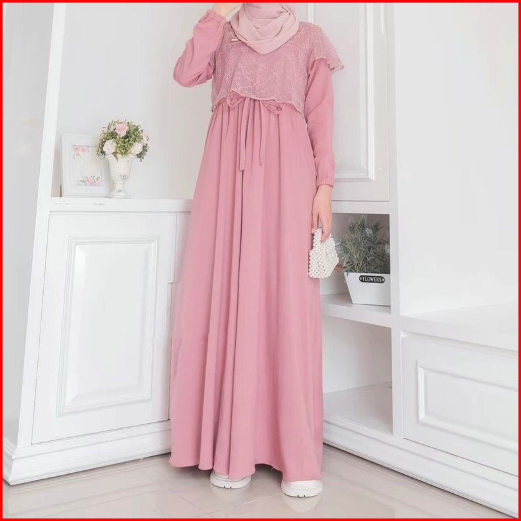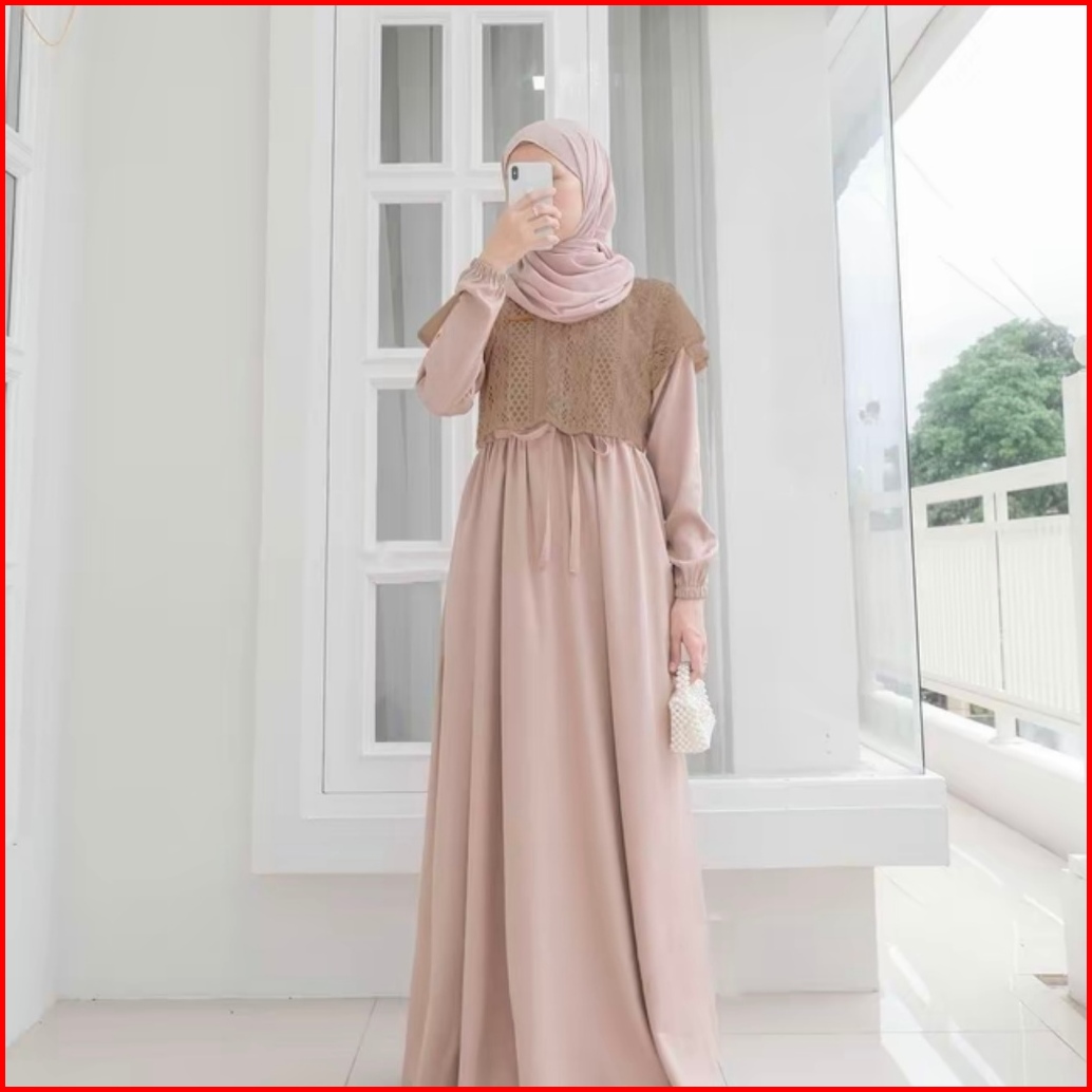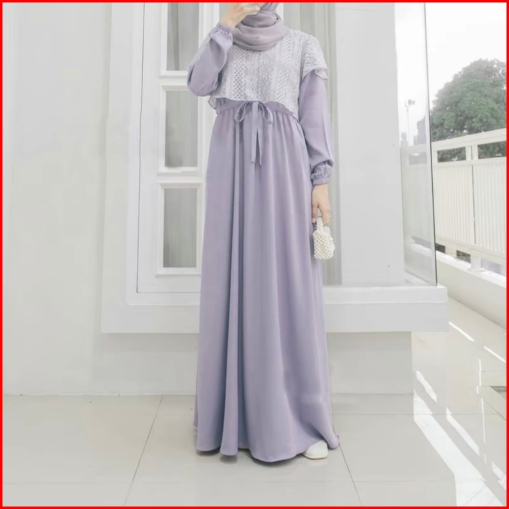 Dress Jora Crinkle Import Mix Brokat Malika Premium Wudhu Friendly Dres Lebaran 2025 Dres Pesta Lebaran Dres Kondongan 2