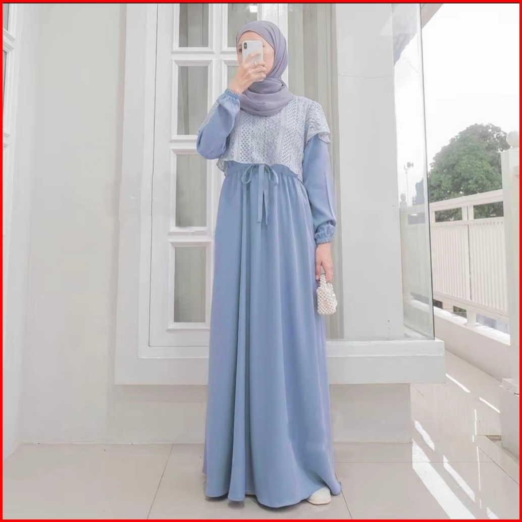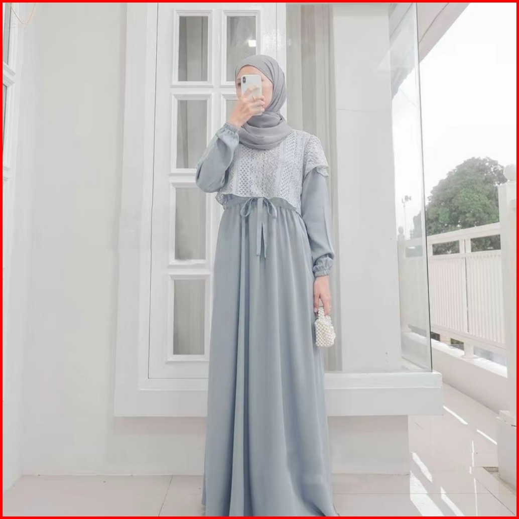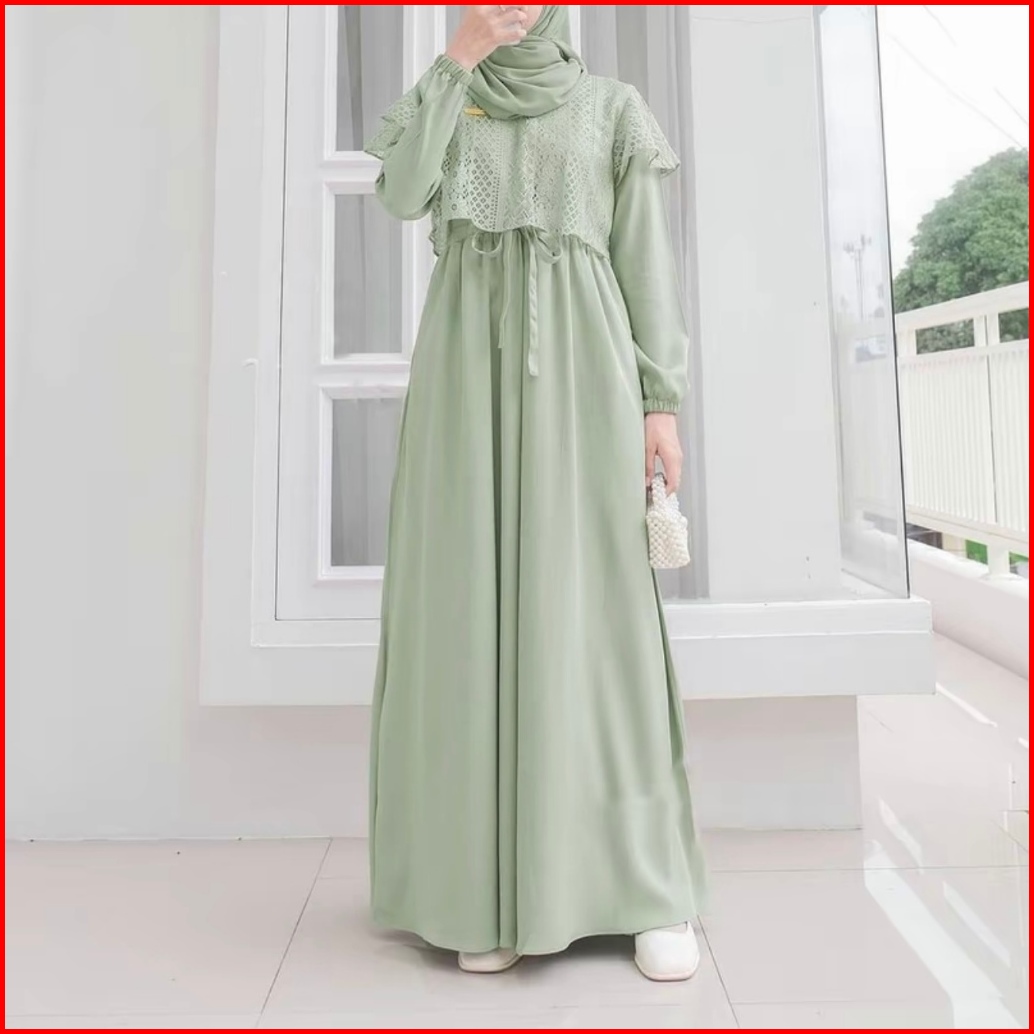 Dress Jora Crinkle Import Mix Brokat Malika Premium Wudhu Friendly Dres Lebaran 2025 Dres Pesta Lebaran Dres Kondongan 2