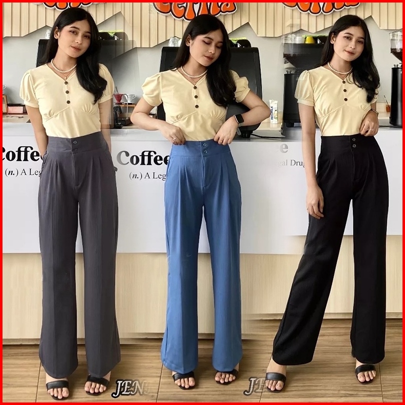 Iooky - Celana Kulot Wanita Loose Pants Kulot Highwaist Jennie Pants Celana Kerja