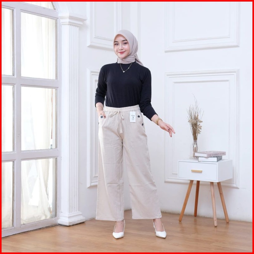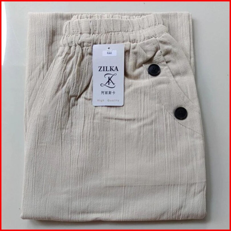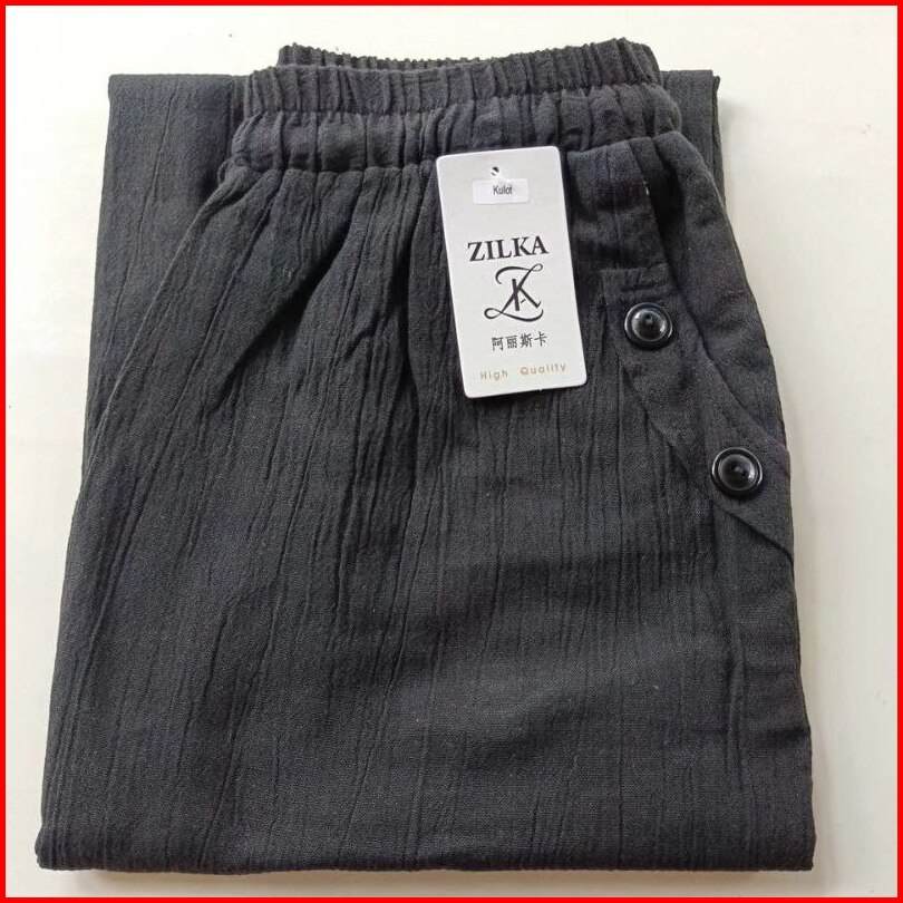 Zilka - Celana Panjang Kulot Wanita Katun Linen Crinkle Jumbo Korean Style