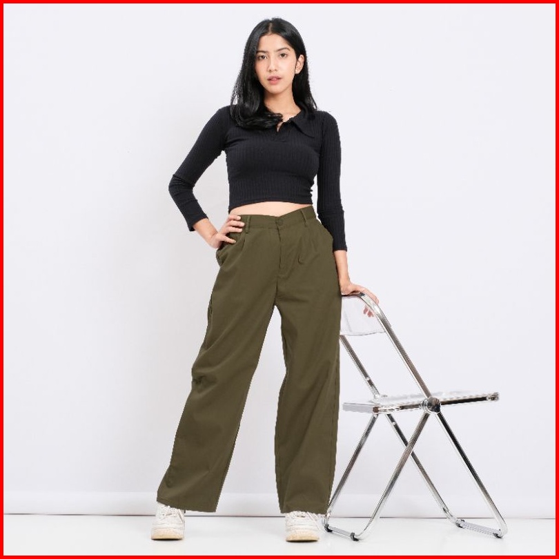 Cuci Gudang Daisy Slim Cullote Celana Kulot Wanita Panjang Loose Highwaist American Drill Premium