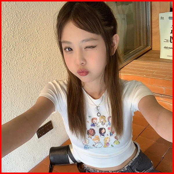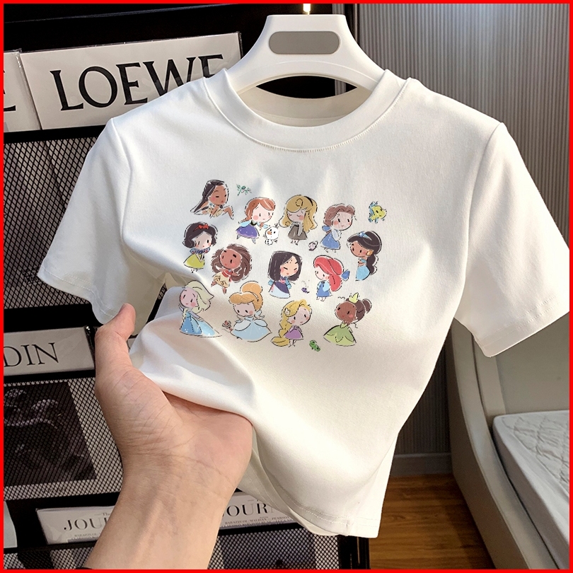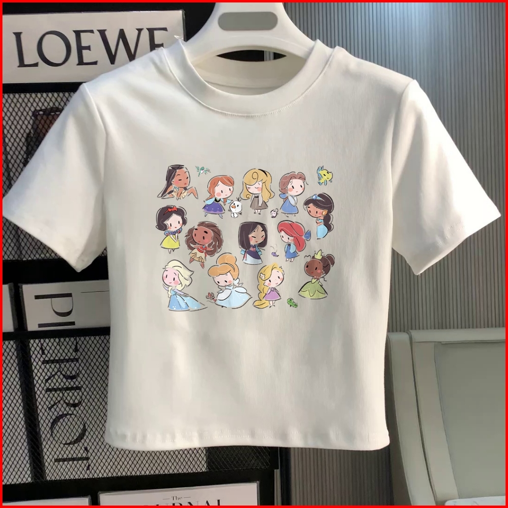 Misco T-shirt Crop Top Lengan Pendek Kaos Wanita Crop Top Korea Retro Cartoon Princess Kaos Crop Wanita Kekinian Baju At
