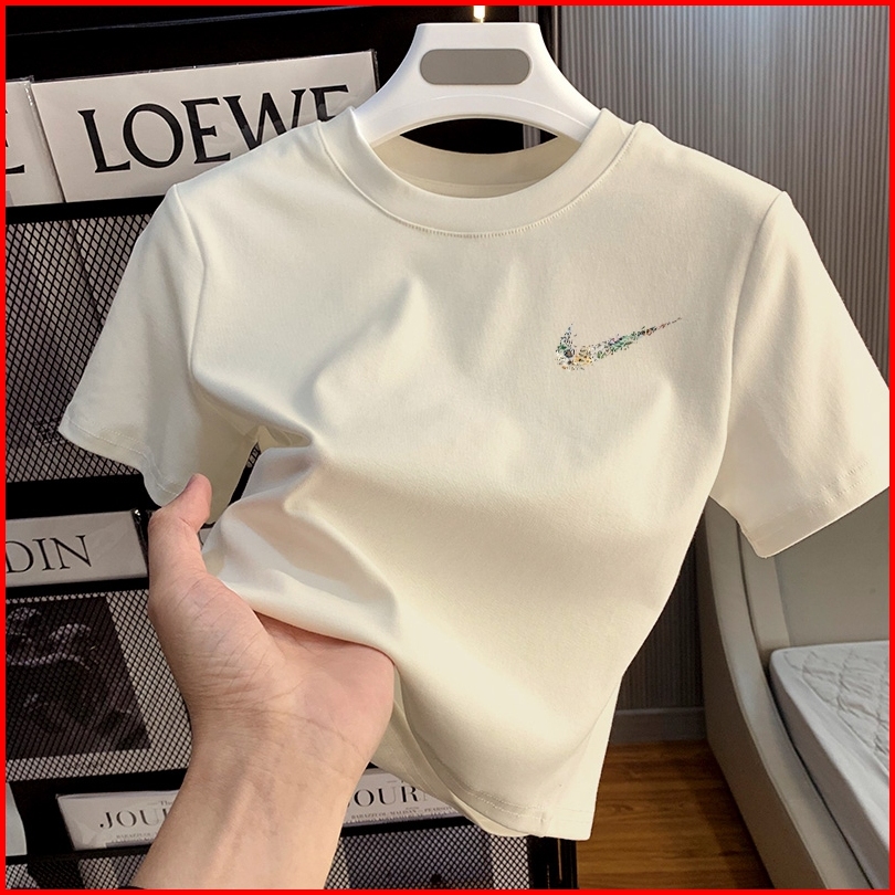 Misco T-shirt Crop Top Lengan Pendek Kaos Wanita Crop Top Cetak Logo Olahraga Kaus Crop Wanita Baju Atasan Wanita Terbar