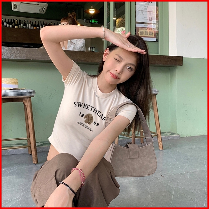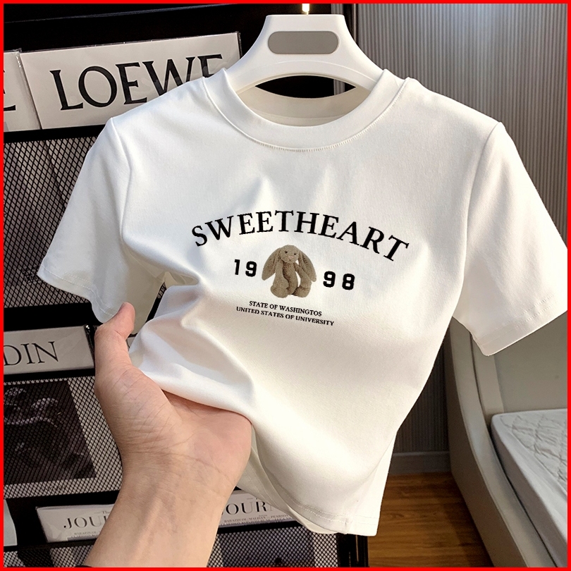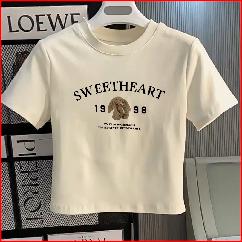 Misco T-shirt Crop Top Tebal Y2k Lengan Pendek Baju Kaos Crop Wanita Sweetheart 1998 Baju Atasan Wanita Terbaru Croptee