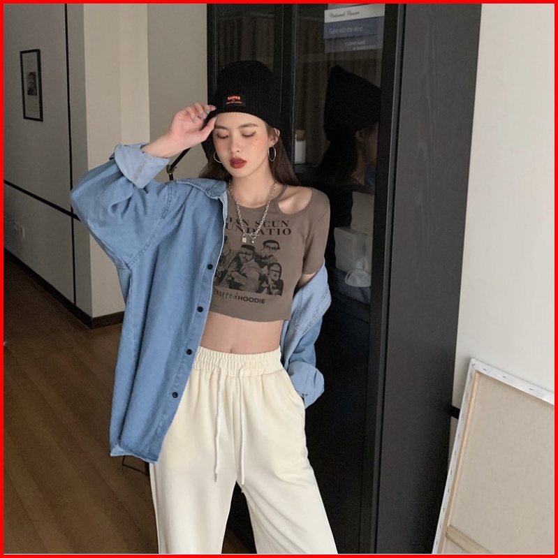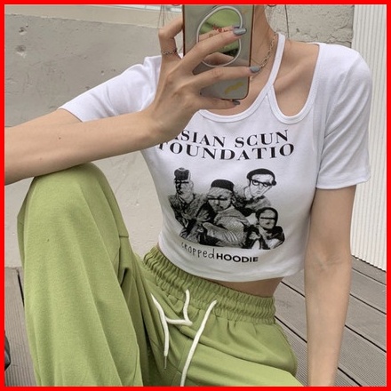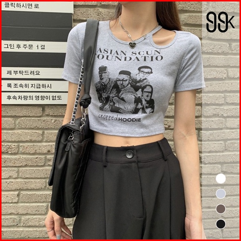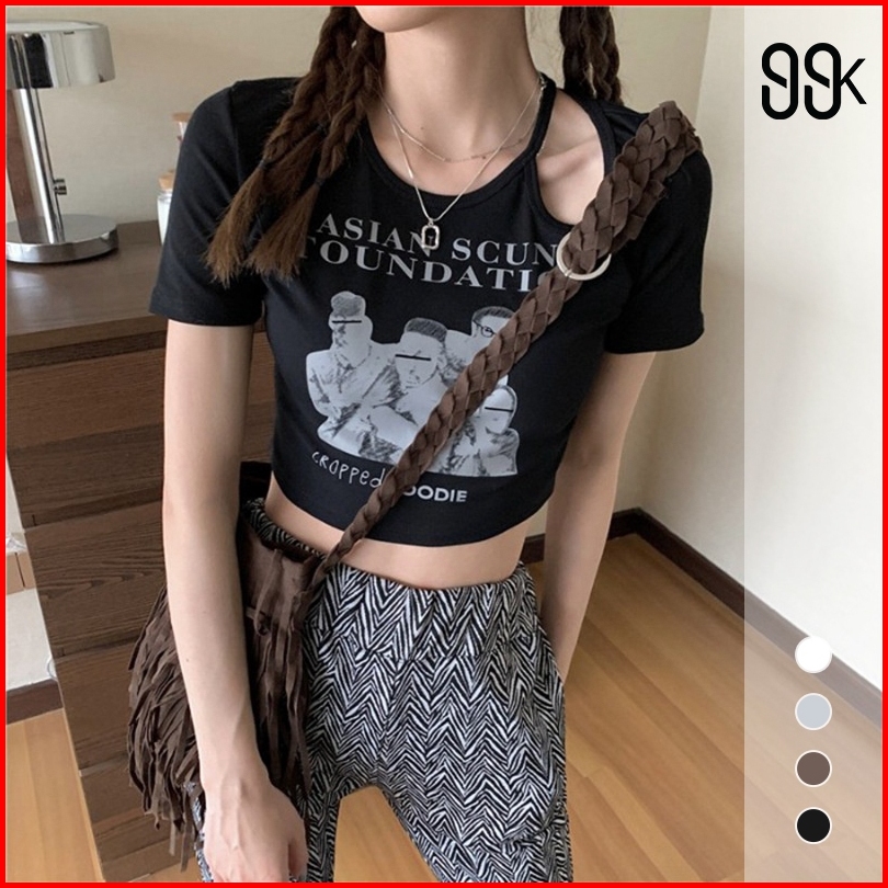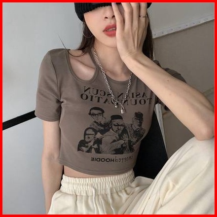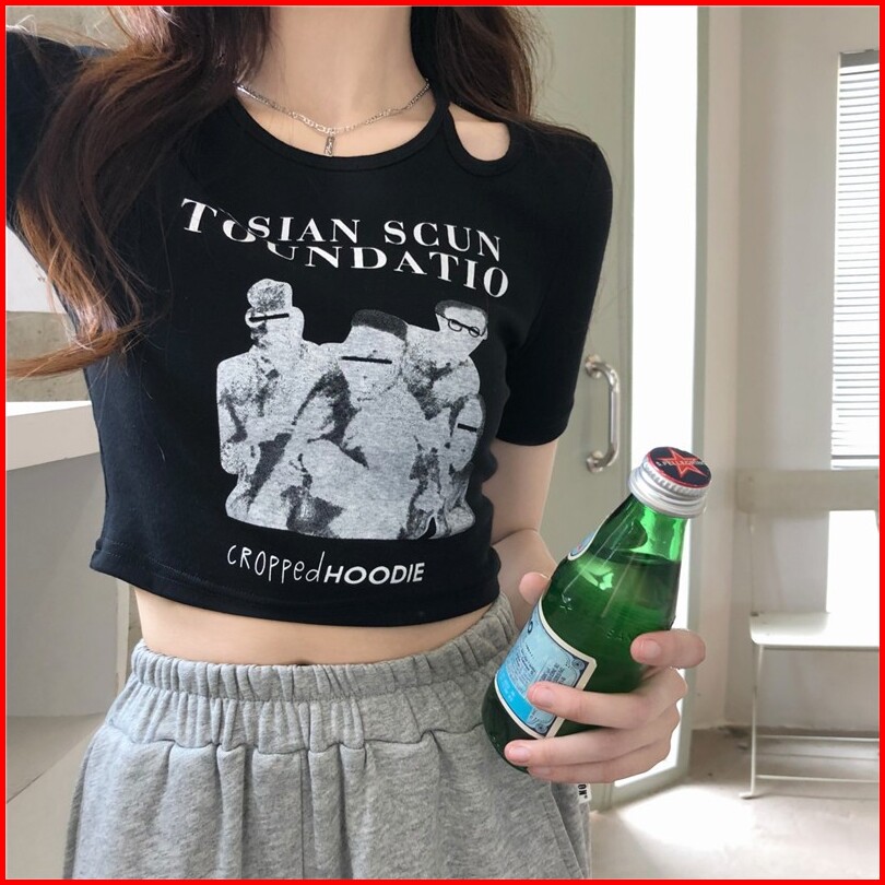 Crop Top Short Sleeve Print Hollow Out 2205 S M L