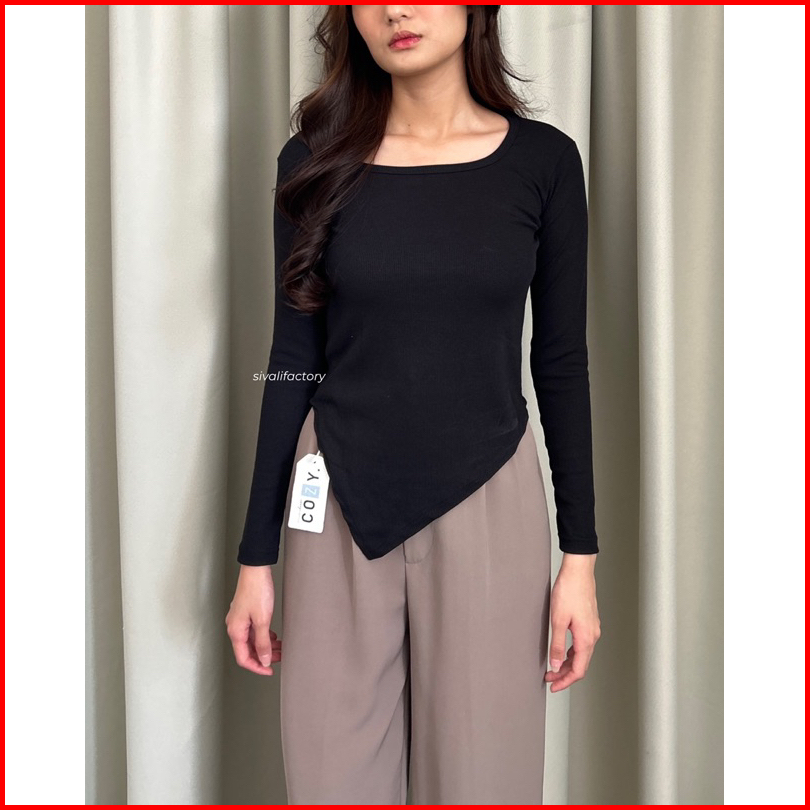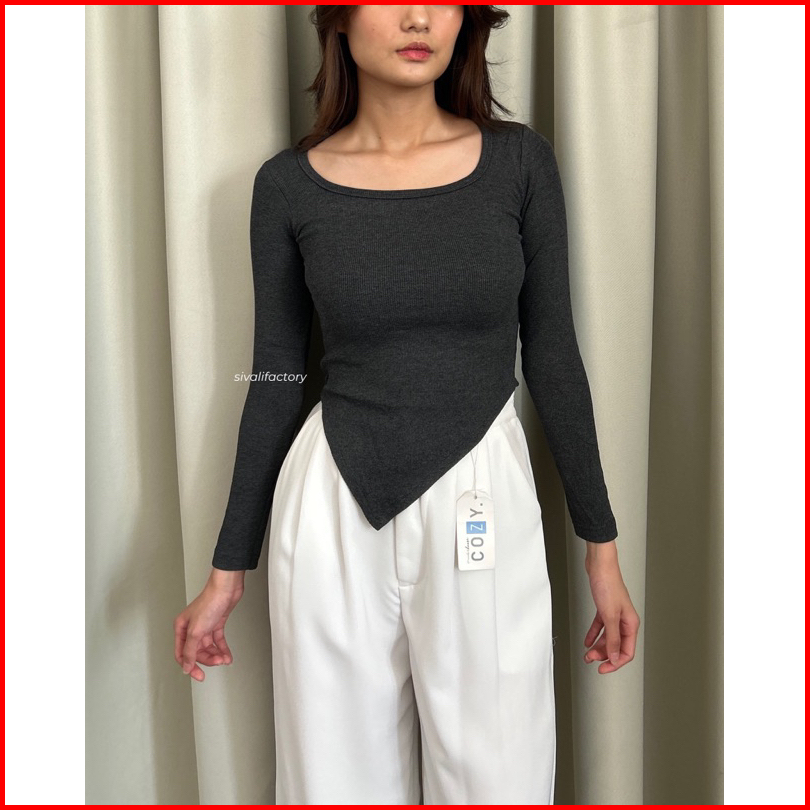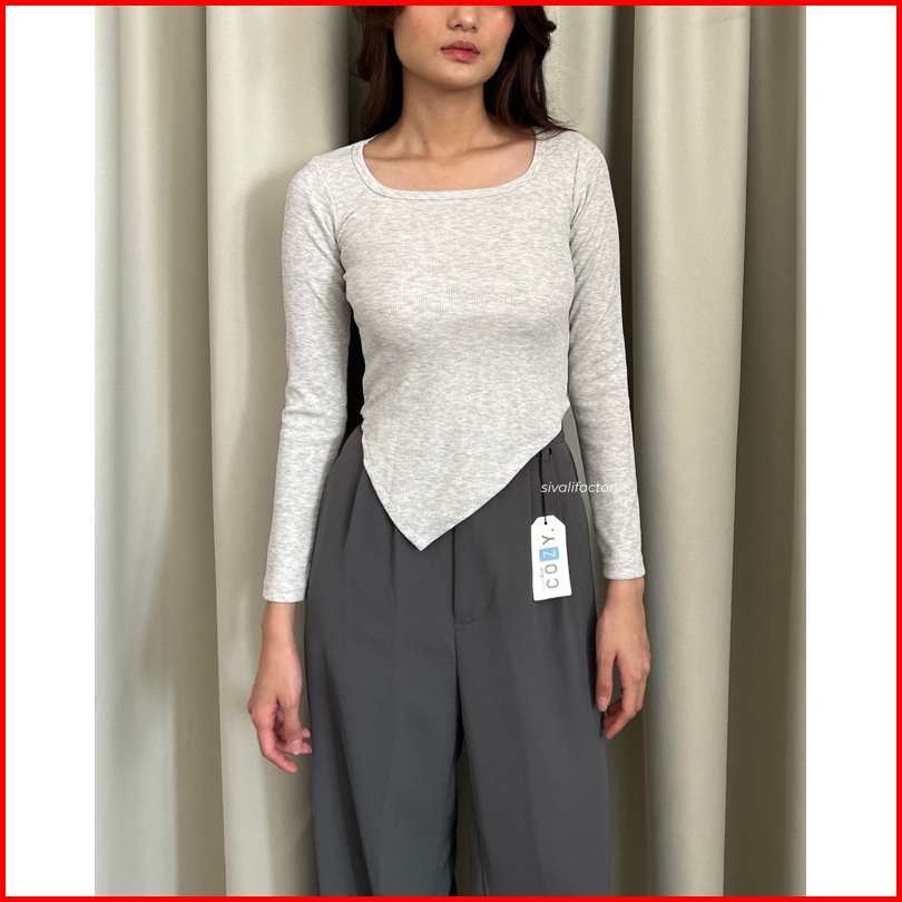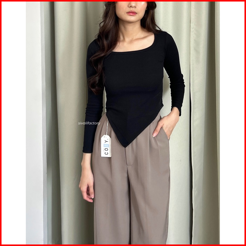 Sivali Hanni Top - Atasan Knit Wanita - Korean Top - Baju Crop Rajut Lengan Panjang - Longsleeve 006